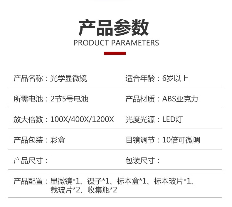 儿童初中小学生专用业级光学显微镜科学实验套装家用高清益智玩具