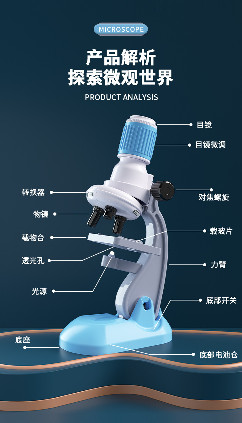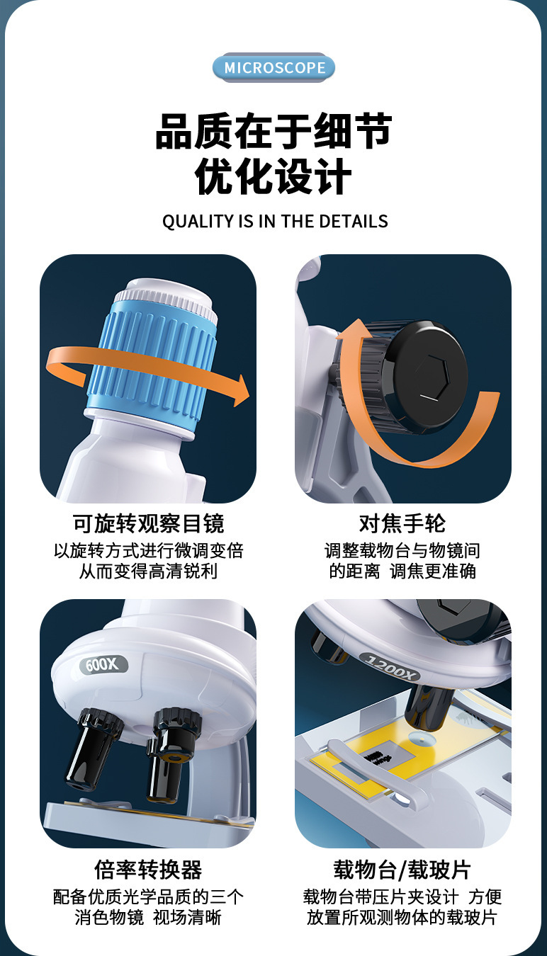 儿童显微镜1200倍专业科学器材生物实验套装初中版小学生益智玩具