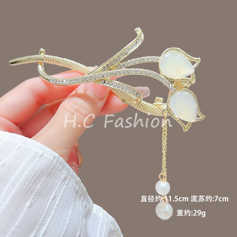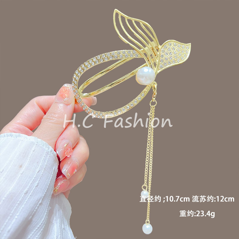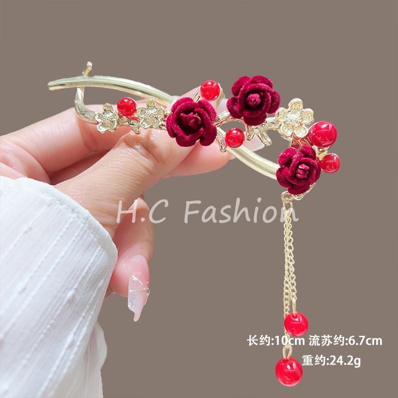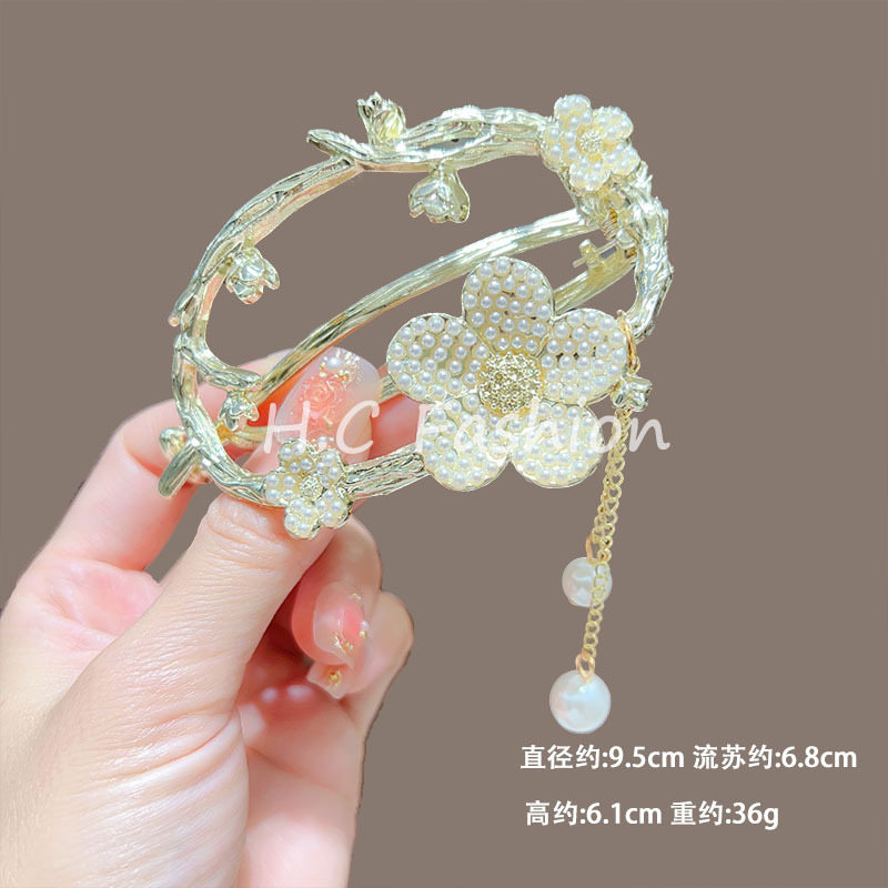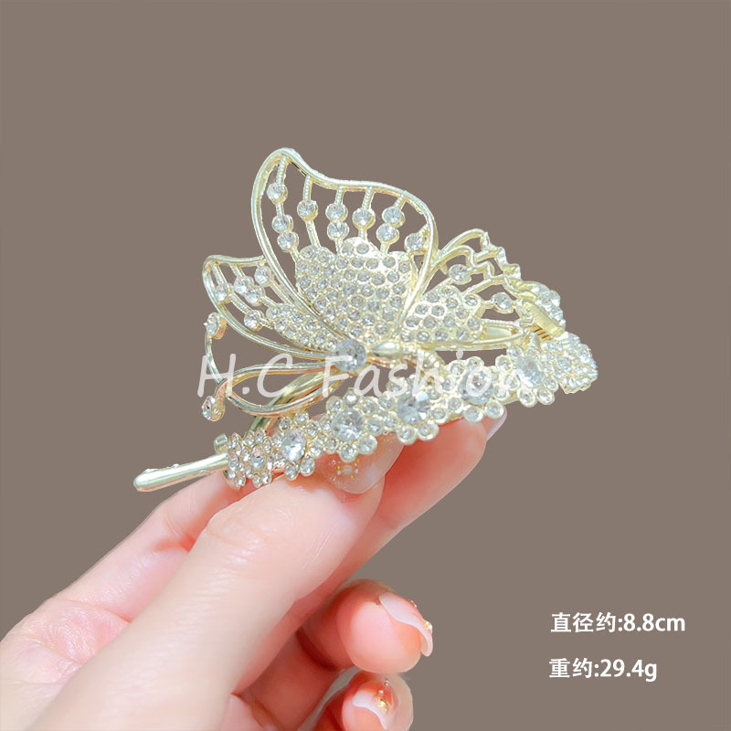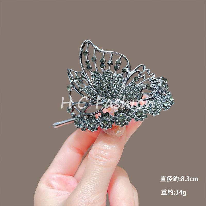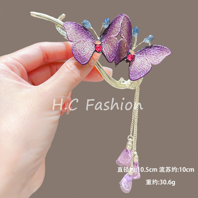 新中式刺绣蝴蝶流苏发夹女复古气质扭扭一字夹丸子扣后脑勺发抓夹