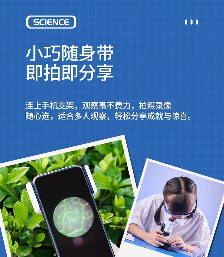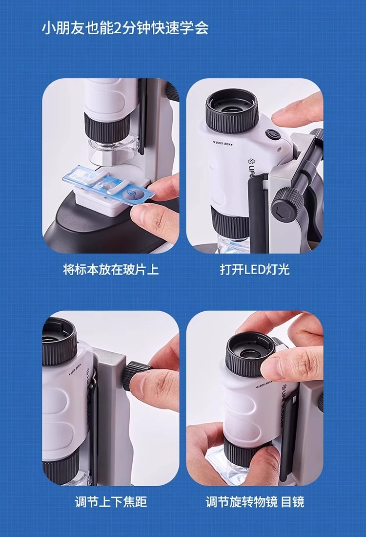 儿童便携式显微镜科学实验套装益智玩具小学生初中专用男孩礼物女