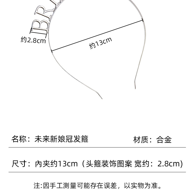 新娘发箍复古银色头箍婚礼饰品气质超仙Bride订婚派对头饰女