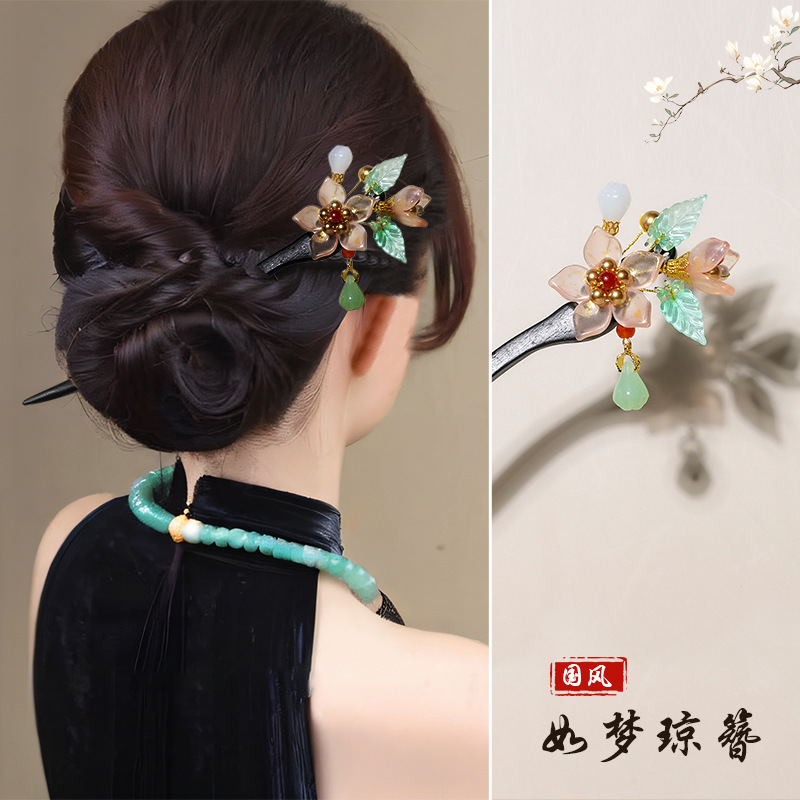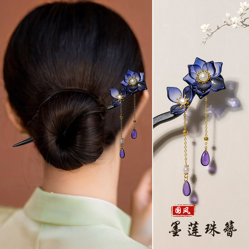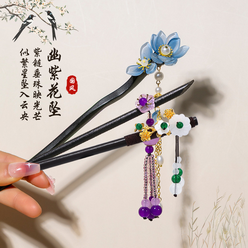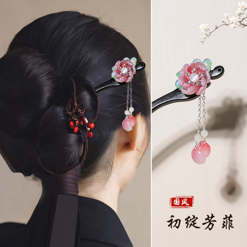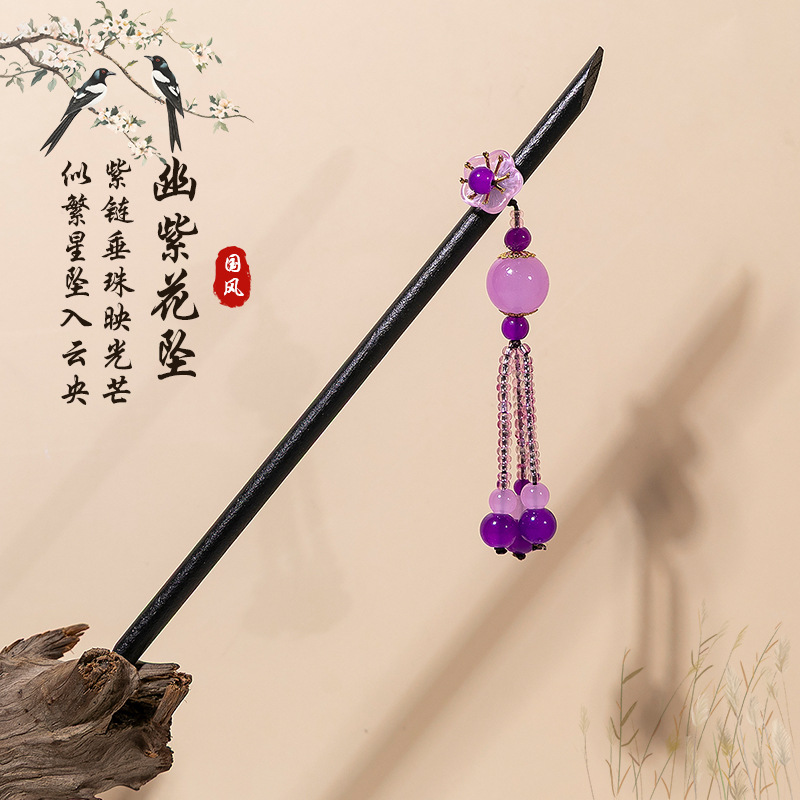 古风发簪流苏步摇仿黑檀木簪盘头汉服配饰古装发钗挽发饰品礼物女