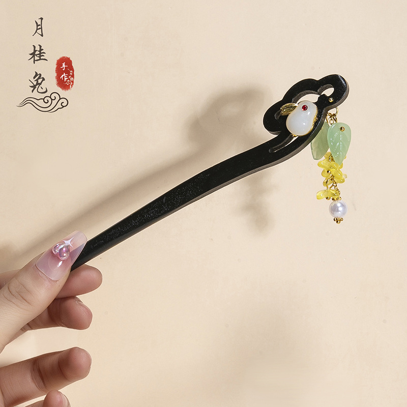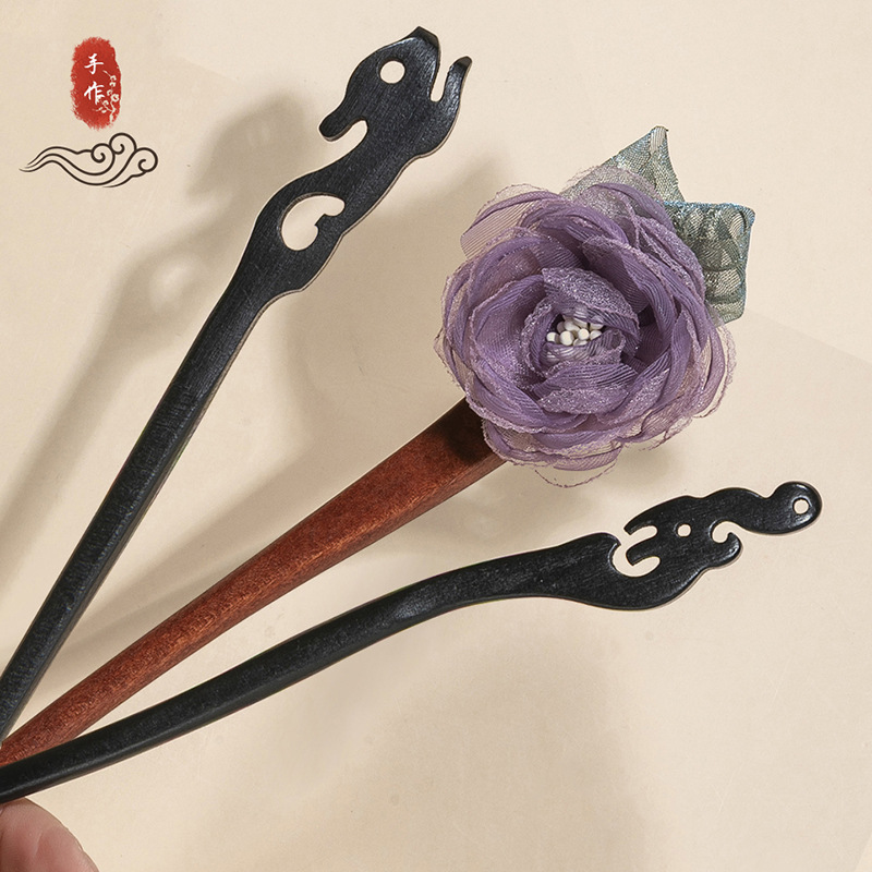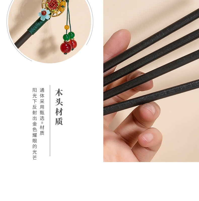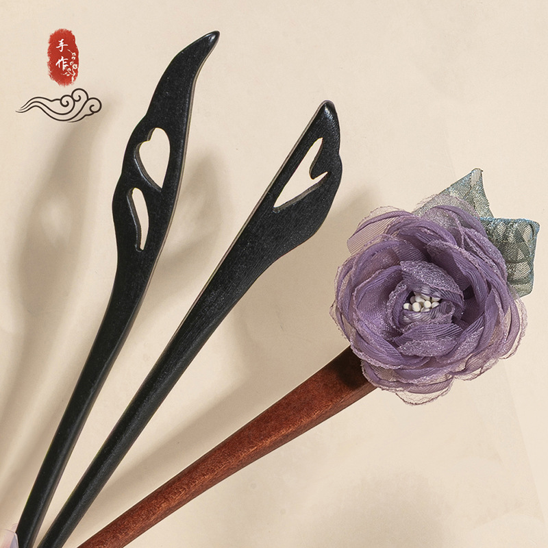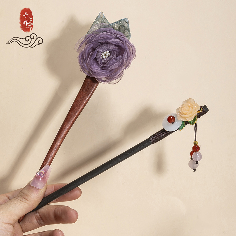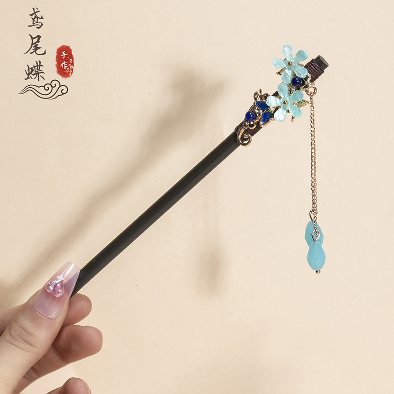 银莲花流苏木发簪新中式缠花工艺汉服配饰旗袍盘发步摇发钗丸子头