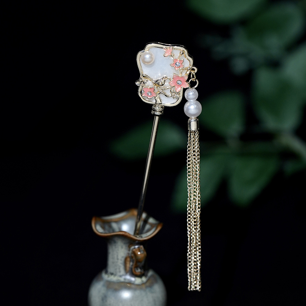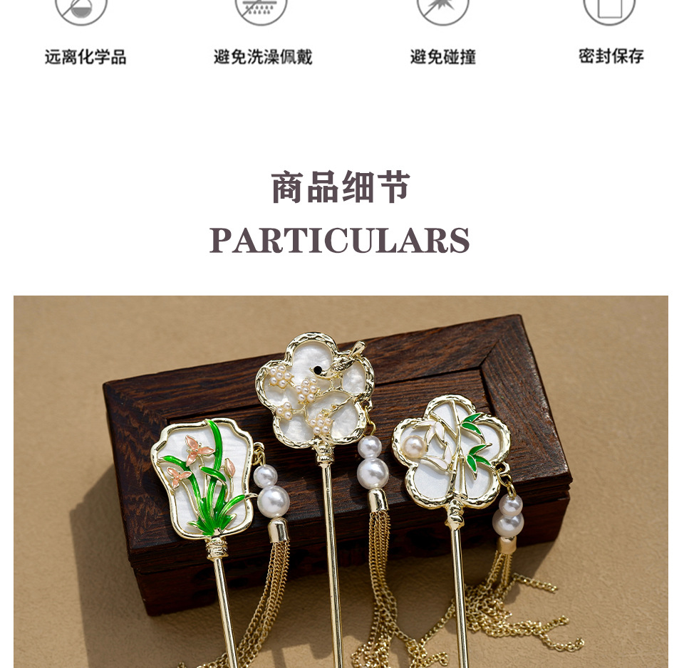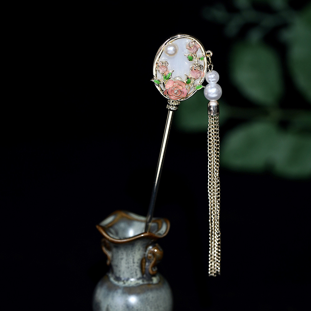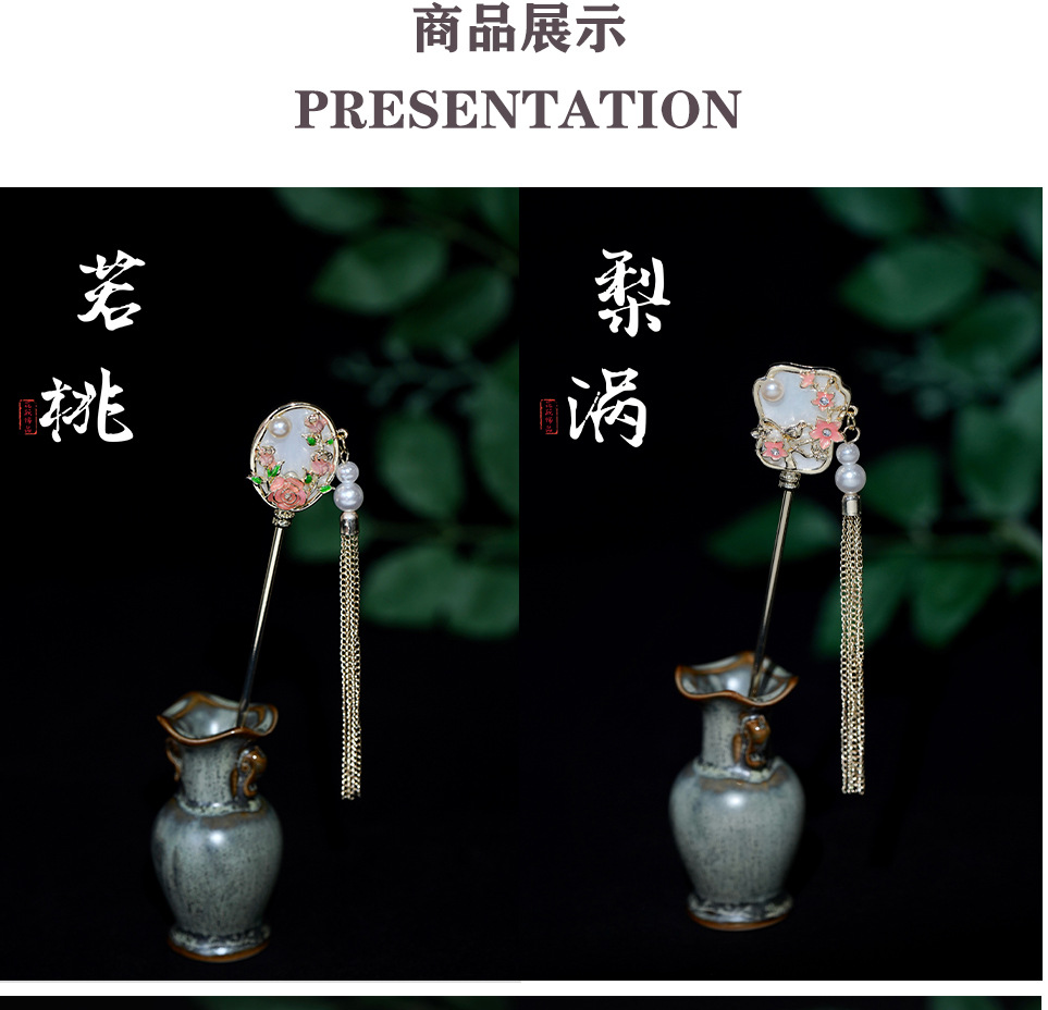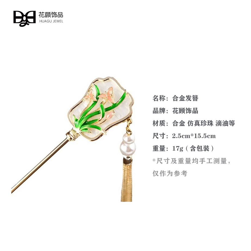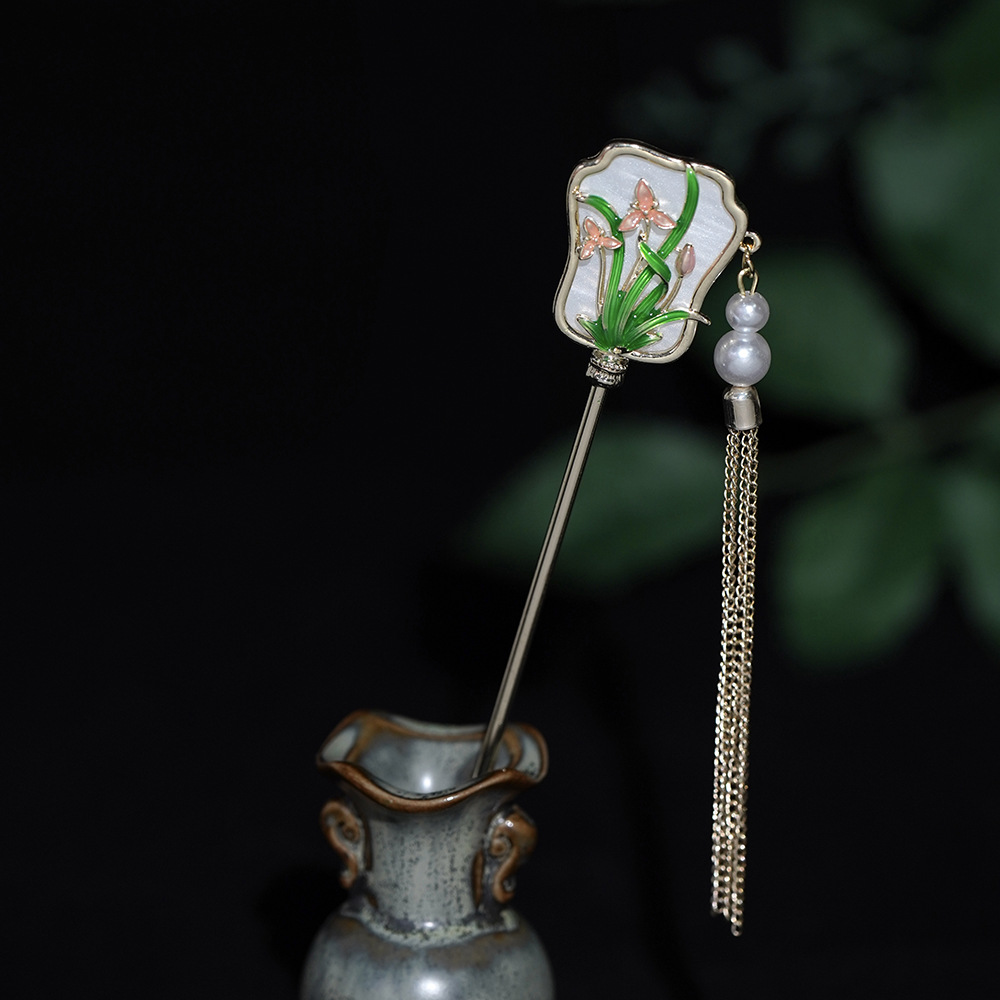 优雅发簪新中式簪子步摇琉璃盘发流苏发饰汉服古风发钗扇子头饰女