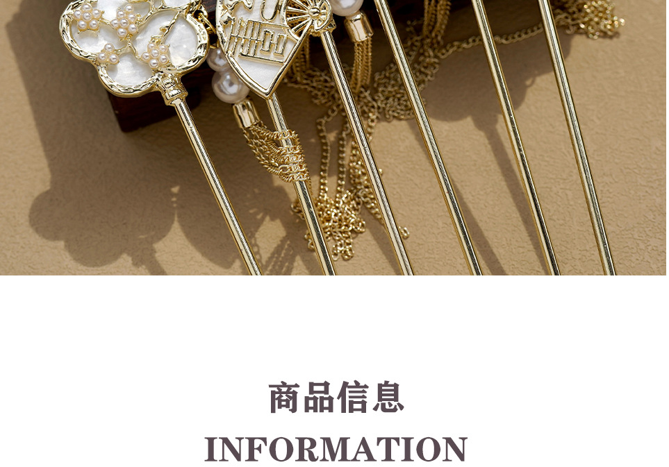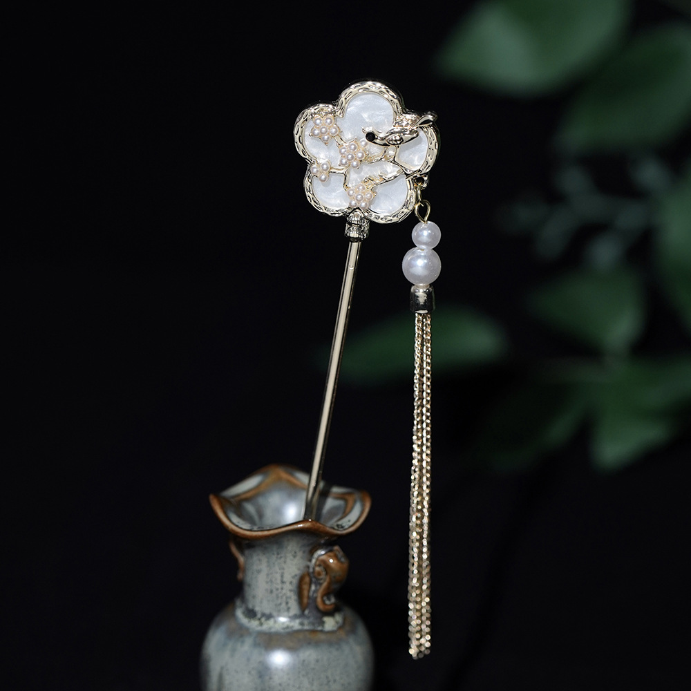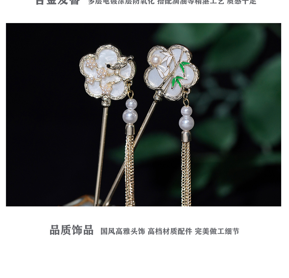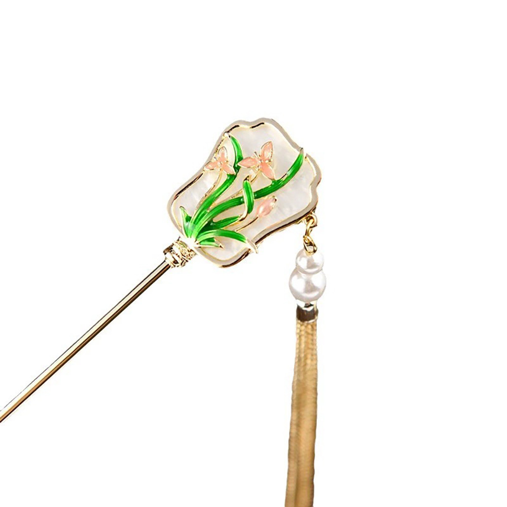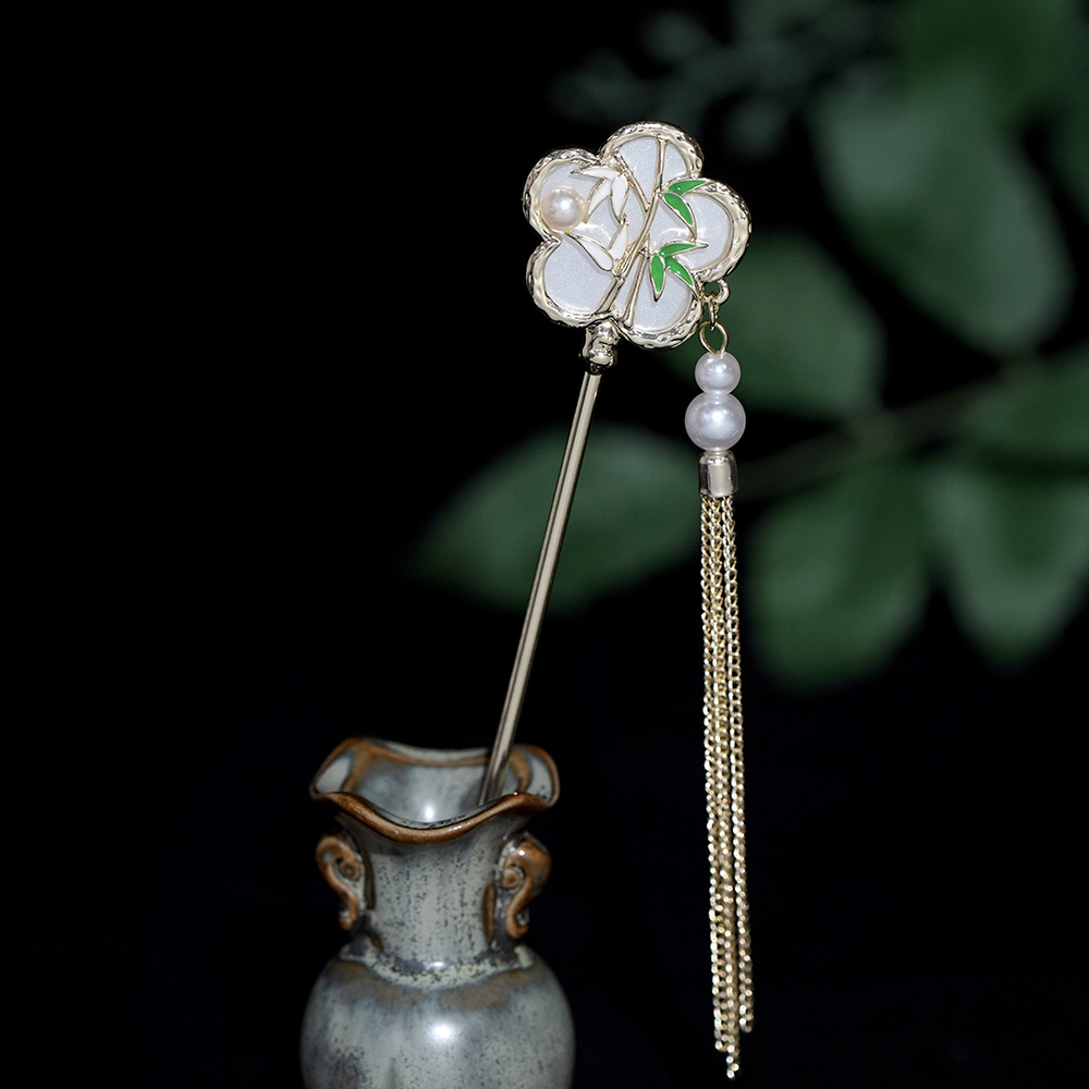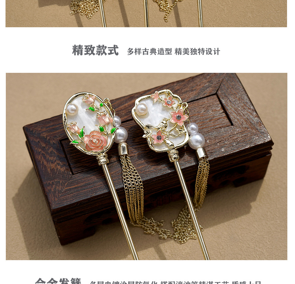 优雅发簪新中式簪子步摇琉璃盘发流苏发饰汉服古风发钗扇子头饰女