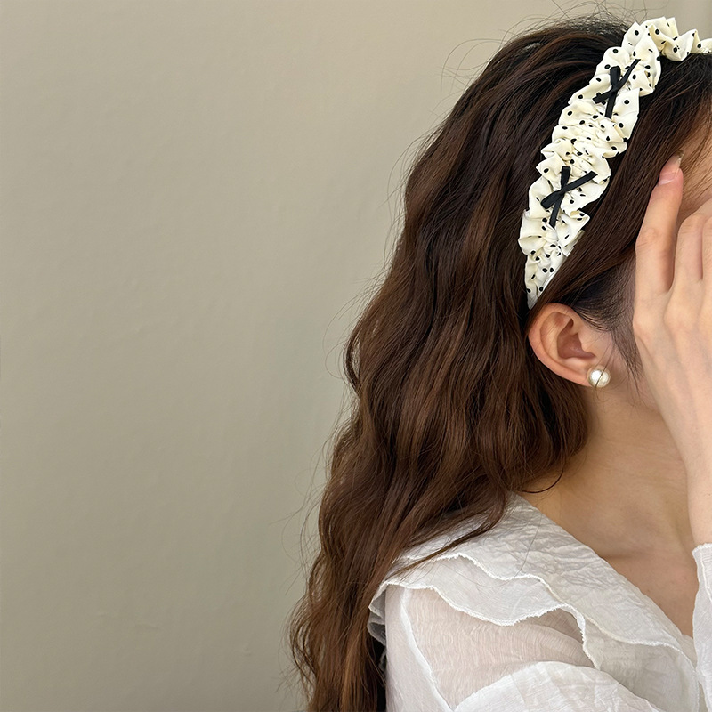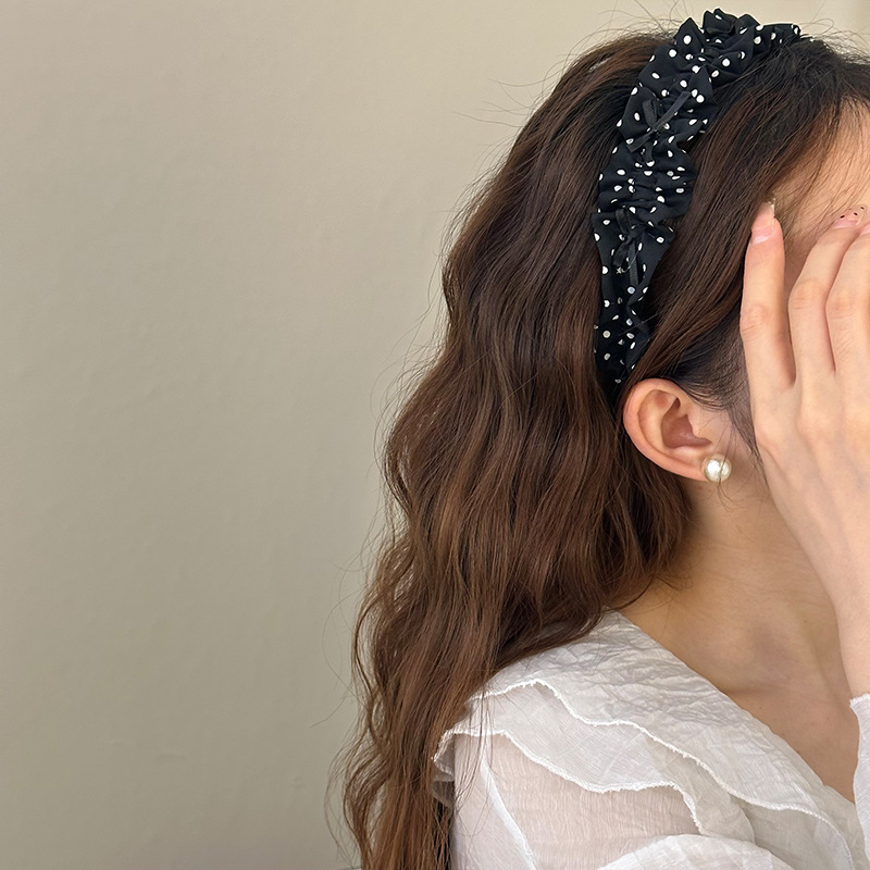 新款波点蝴蝶结发箍女韩式褶皱百搭发饰高颅顶压发荷叶边头饰简约