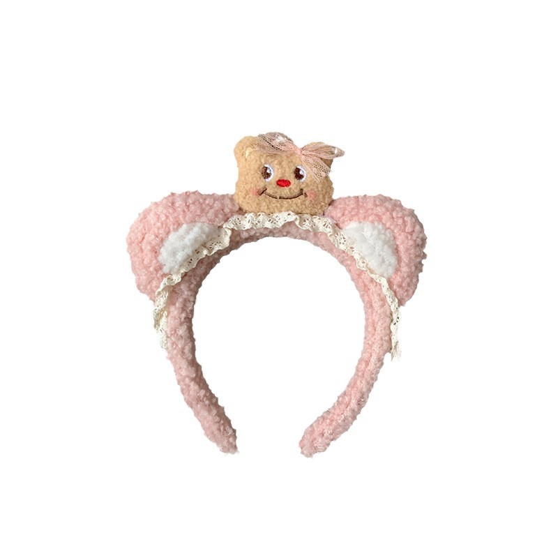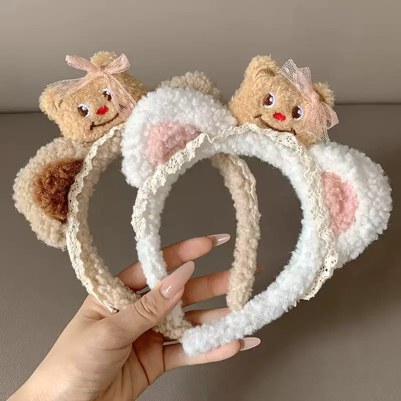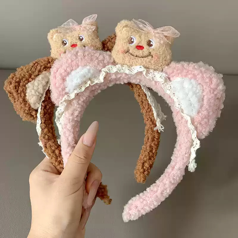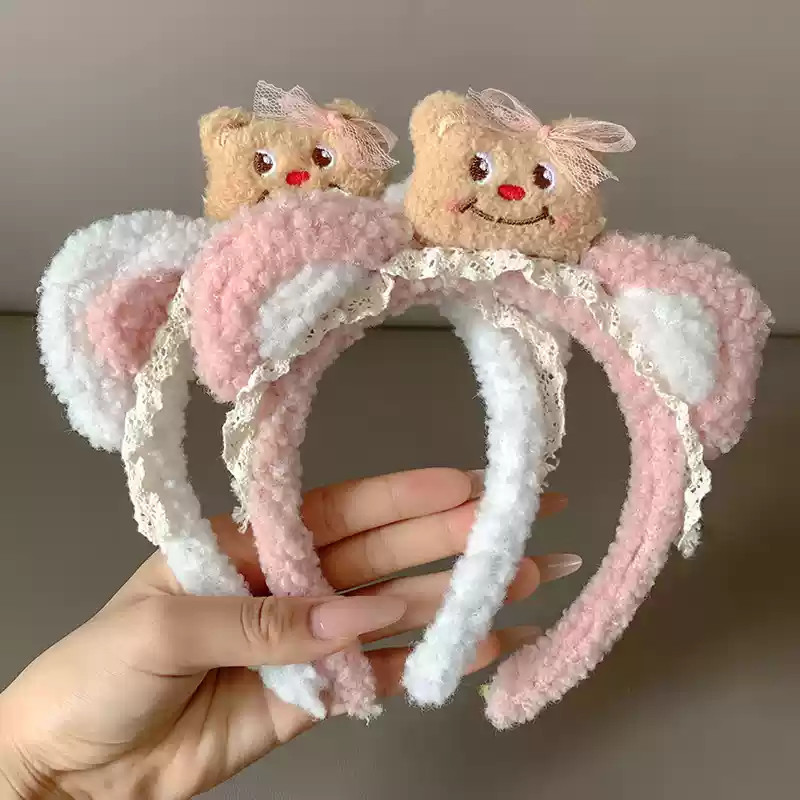爆款熊耳朵洗脸发箍羊羔毛蝴蝶结头箍Lolita风格软妹搞怪发卡发饰