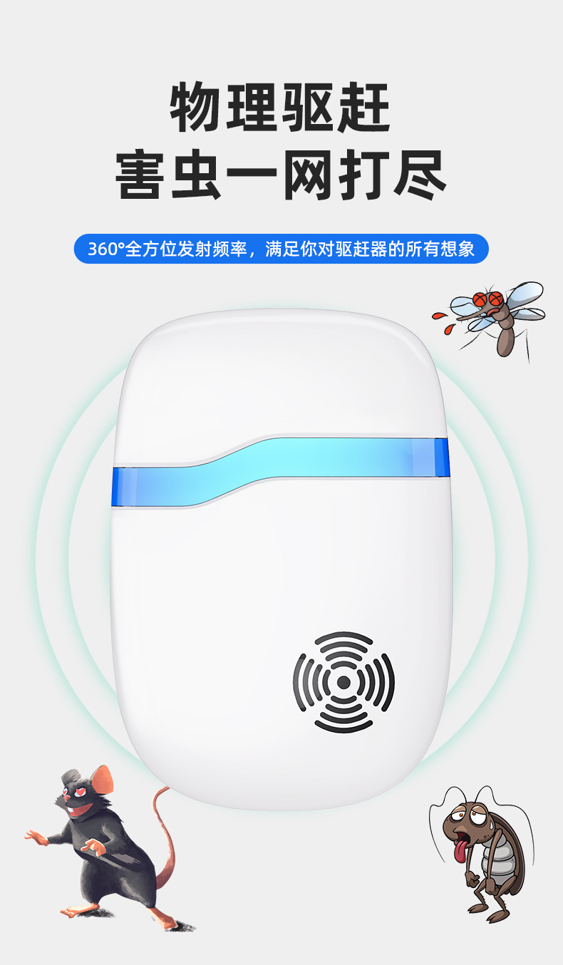 新款超声波驱鼠器电子驱虫驱蚊器家用智能灭蚊灭鼠驱赶器跨境爆款