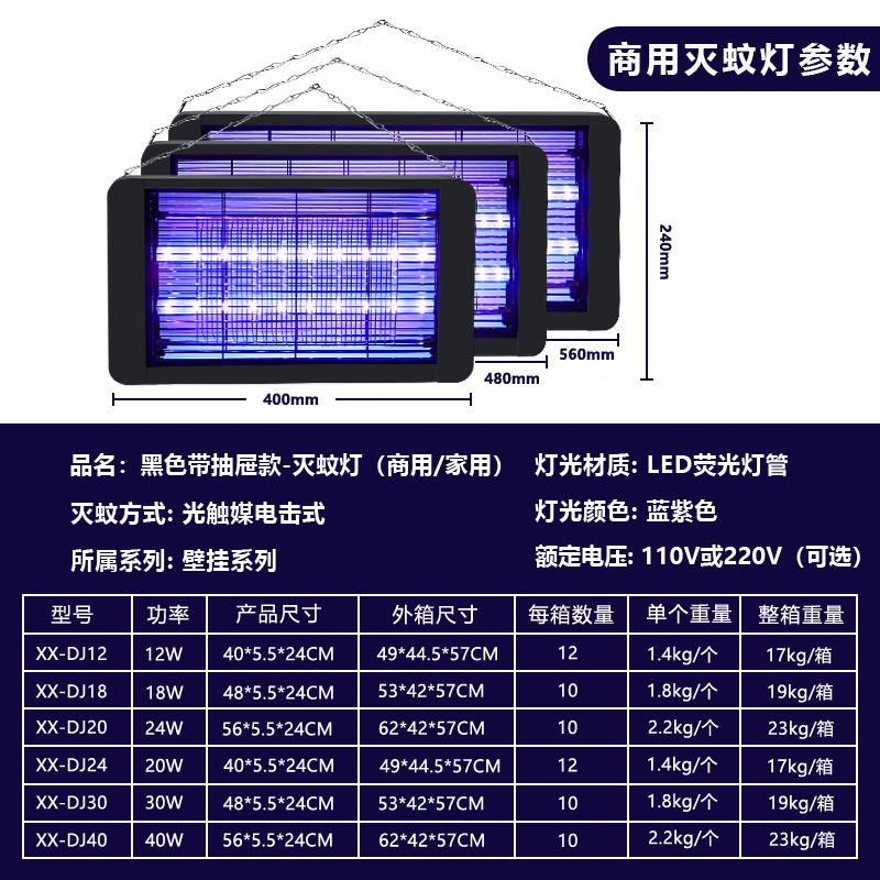 亚马逊跨境室内商用灭蚊器电击式户外家用餐厅饭店驱蚊自动诱蚊灯