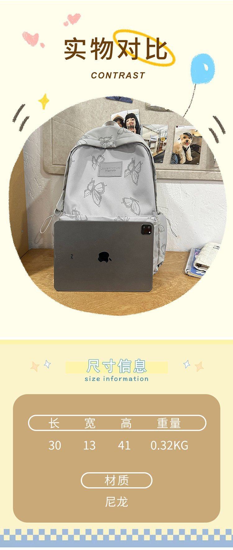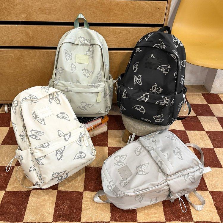 日系小众设计蝴蝶双肩包女百搭大学生上课书包休闲旅行背包电脑包