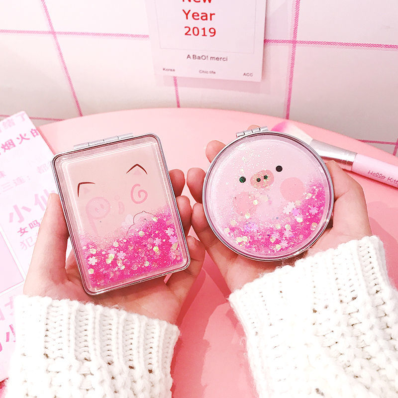 流沙镜子双面化妆镜随身迷你小镜子ins可折叠学生便携小圆镜韩版