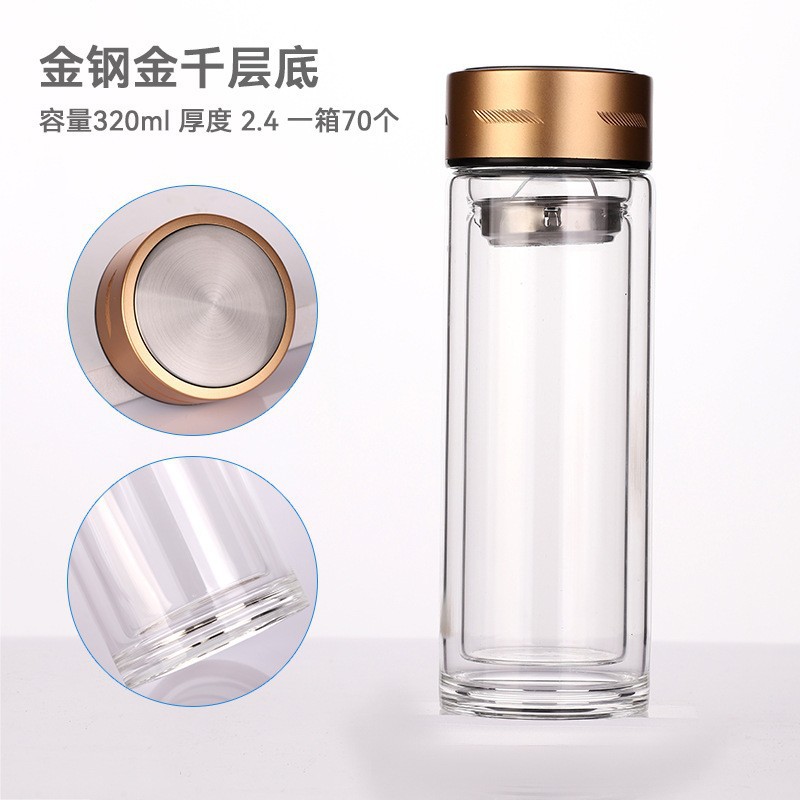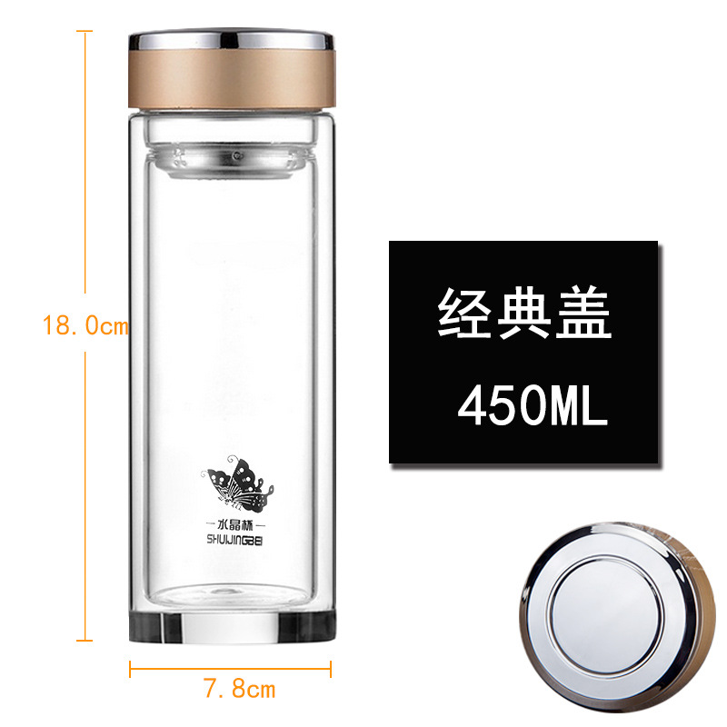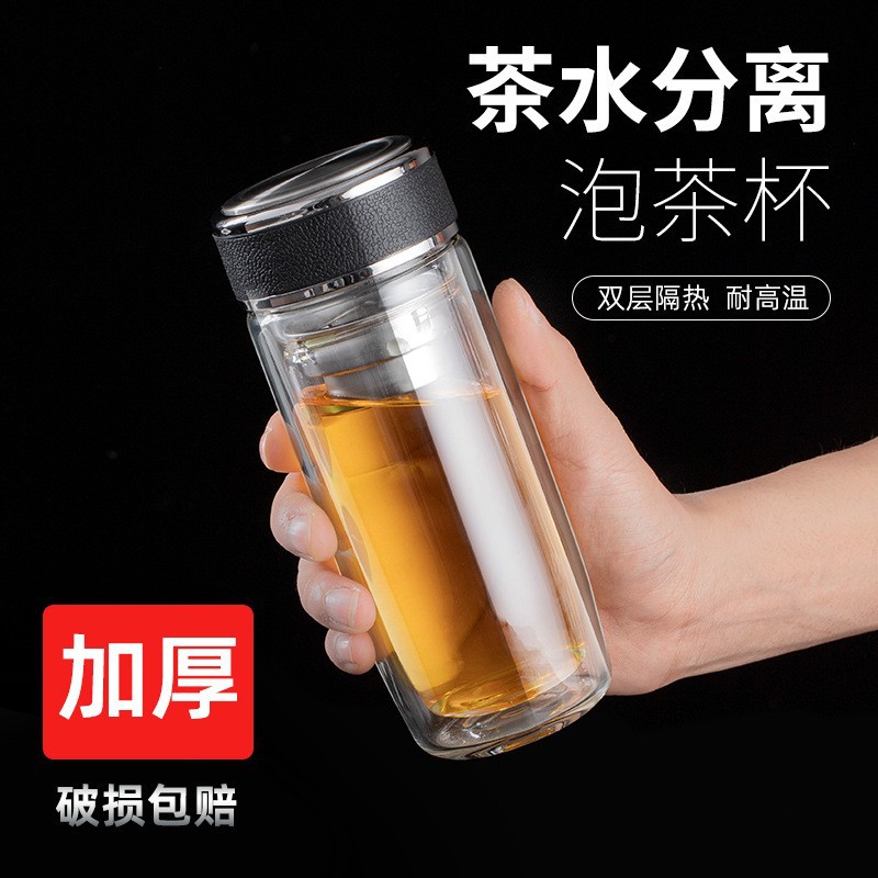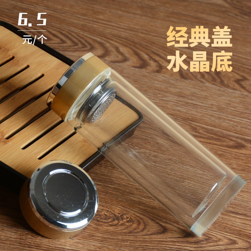 加厚双层玻璃杯印字logo耐高温茶杯印字水晶杯促销广告礼品水杯子
