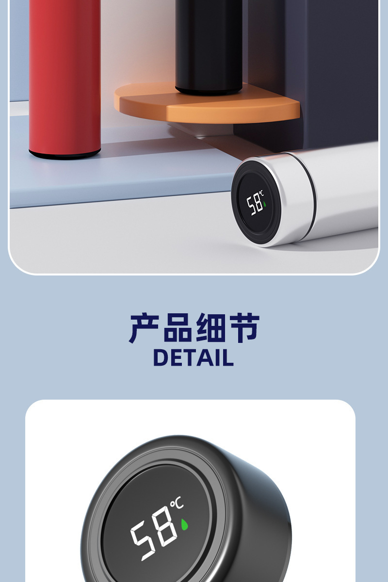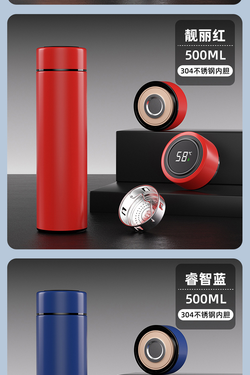 智能测温保温杯LED显示温度水杯304不锈钢保温杯礼品杯可定LOGO