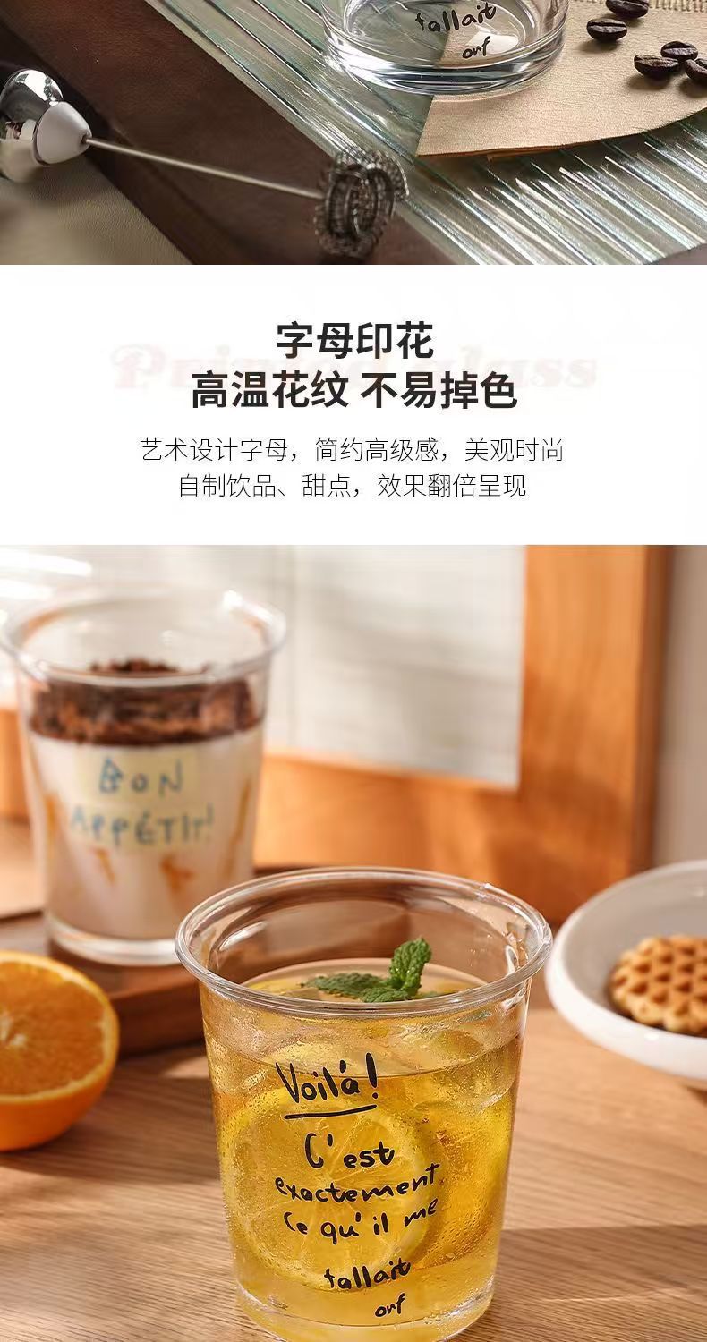 玻璃咖啡杯冰美式杯子家用水杯高颜值英文字母拿铁牛奶杯饮料酒杯