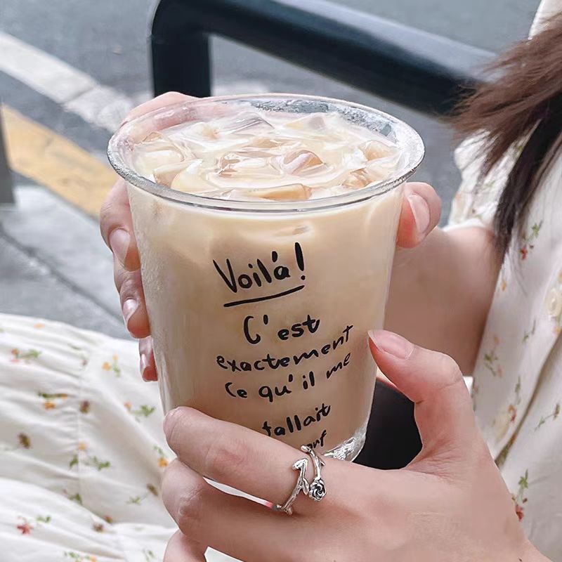 glass coffee cup ice american cup household water cup good-looking english letters latte milk cup drink wine glass