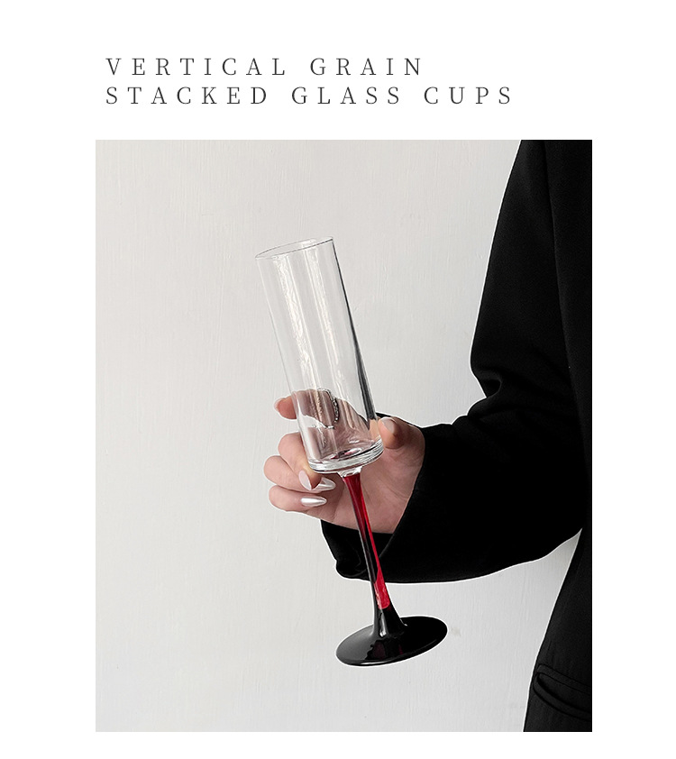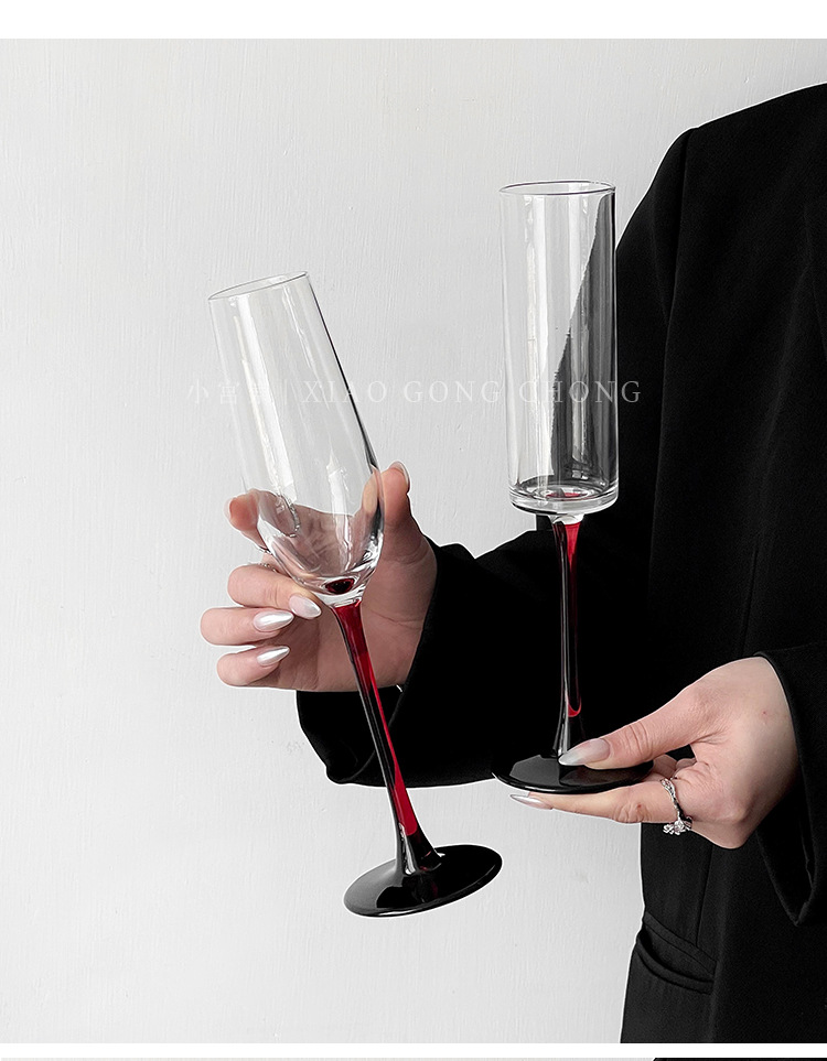 欧式红杆高脚香槟杯高级感创意水晶玻璃红酒杯酒吧特调鸡尾酒杯子
