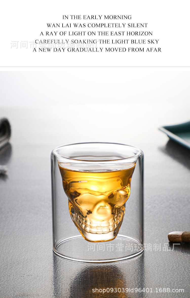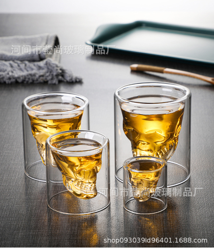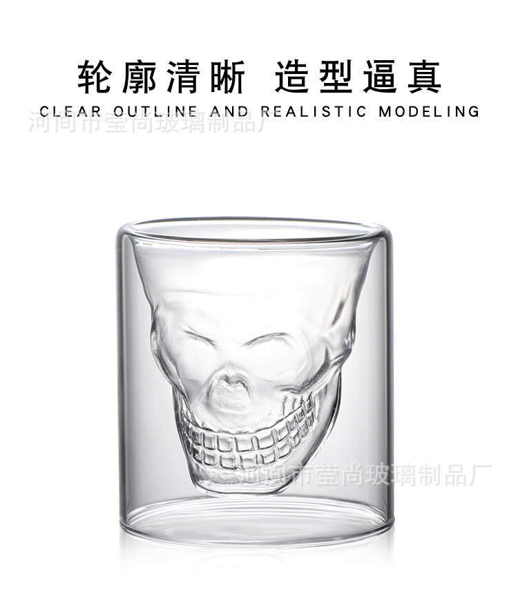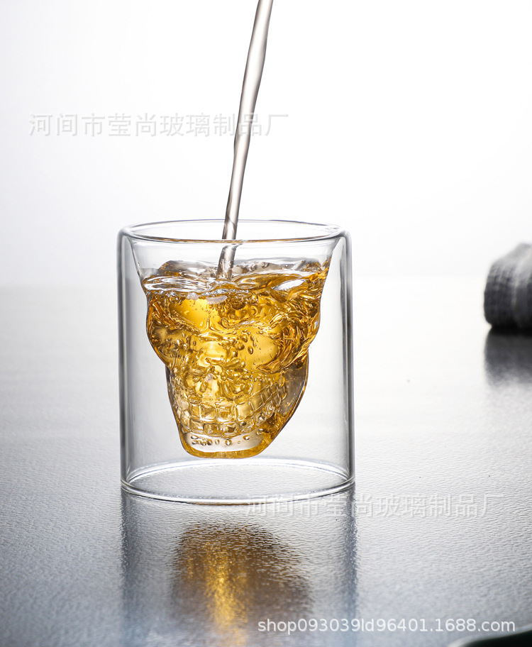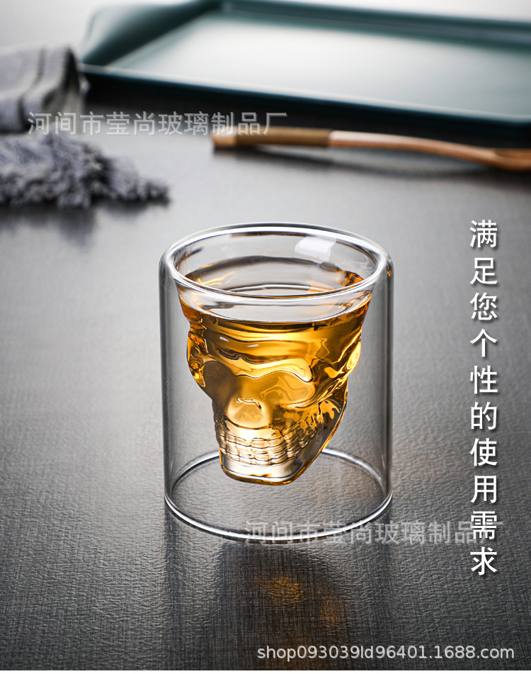 骷髅杯头骨酒杯威士忌酒杯白酒杯个性双层透明玻璃杯杯子骷髅酒杯