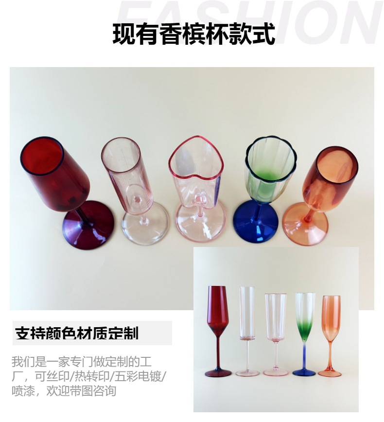 亚克力红酒杯透明香槟杯葡萄酒杯塑料高脚杯白兰地酒吧ktv白酒杯