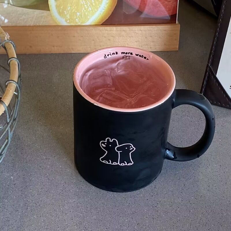 创意黑粉芭比小狗磨砂马克杯耐高温水杯咖啡杯子情侣款陶瓷杯家用