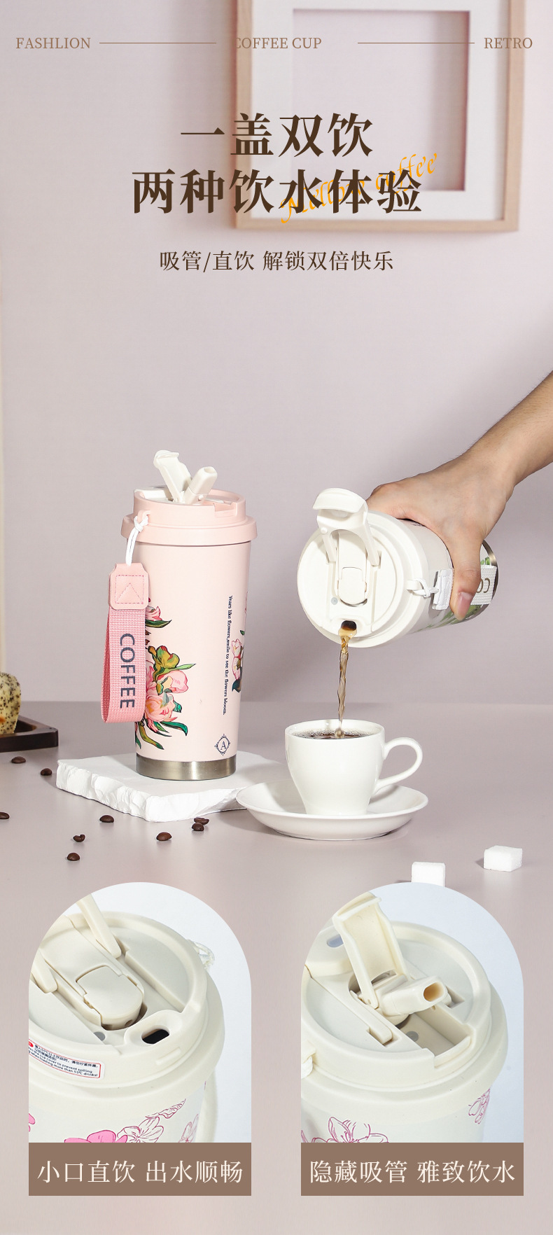 铃兰保温杯316不锈钢咖啡杯吸管双饮ins随行杯子商务礼品水杯批发