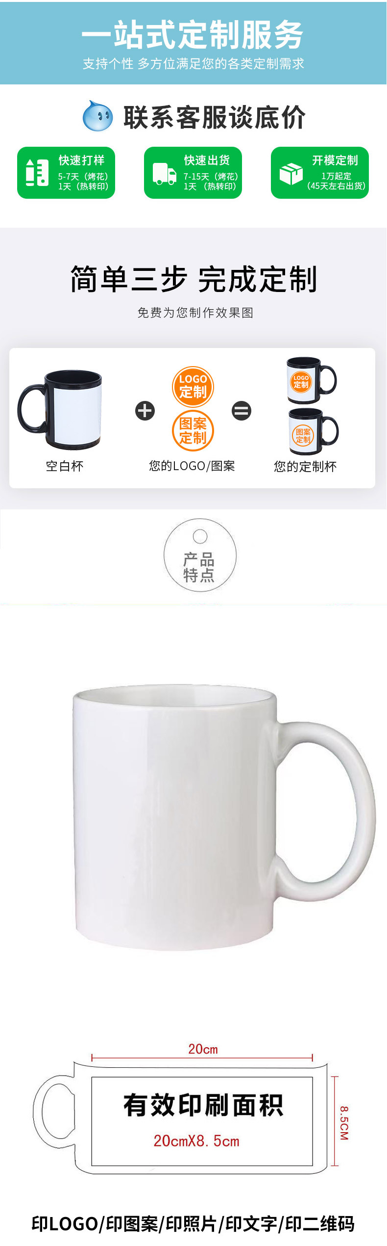 厂家批发创意陶瓷马克杯定 制照片Logo 热转印11oz咖啡杯水杯礼品
