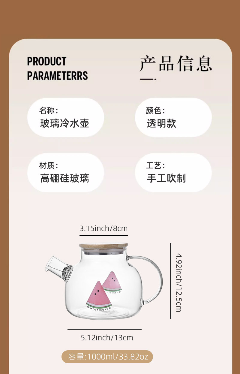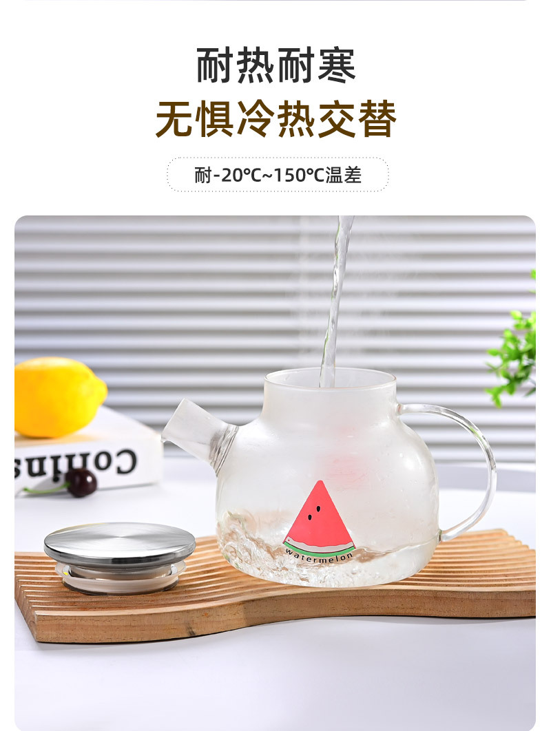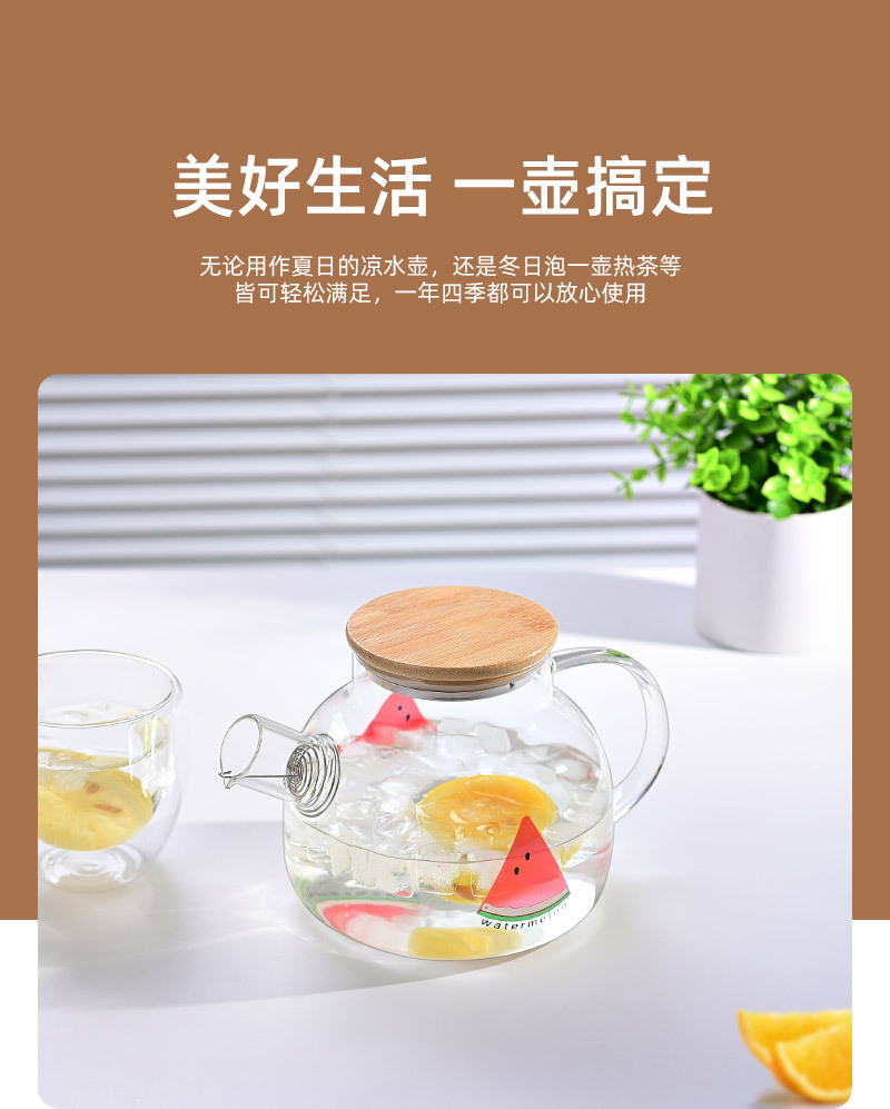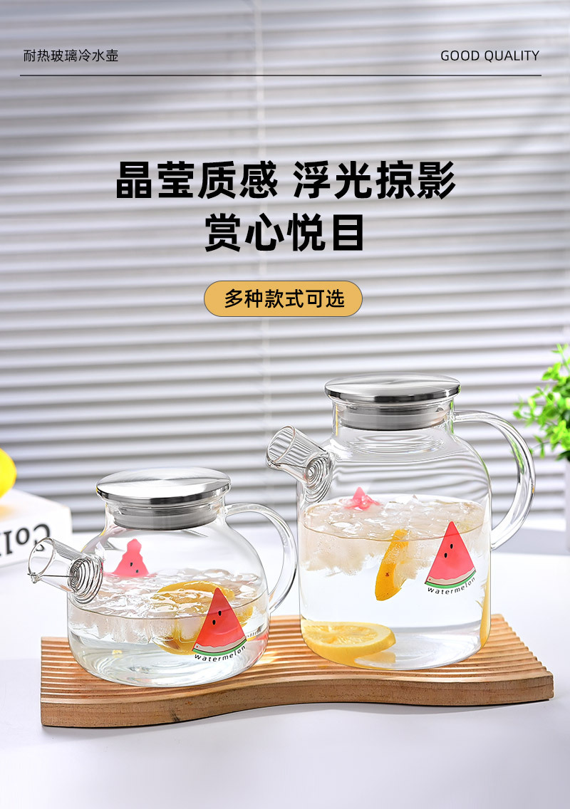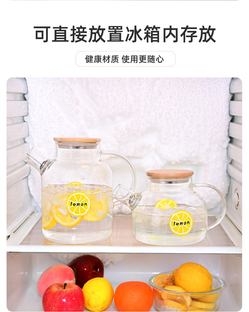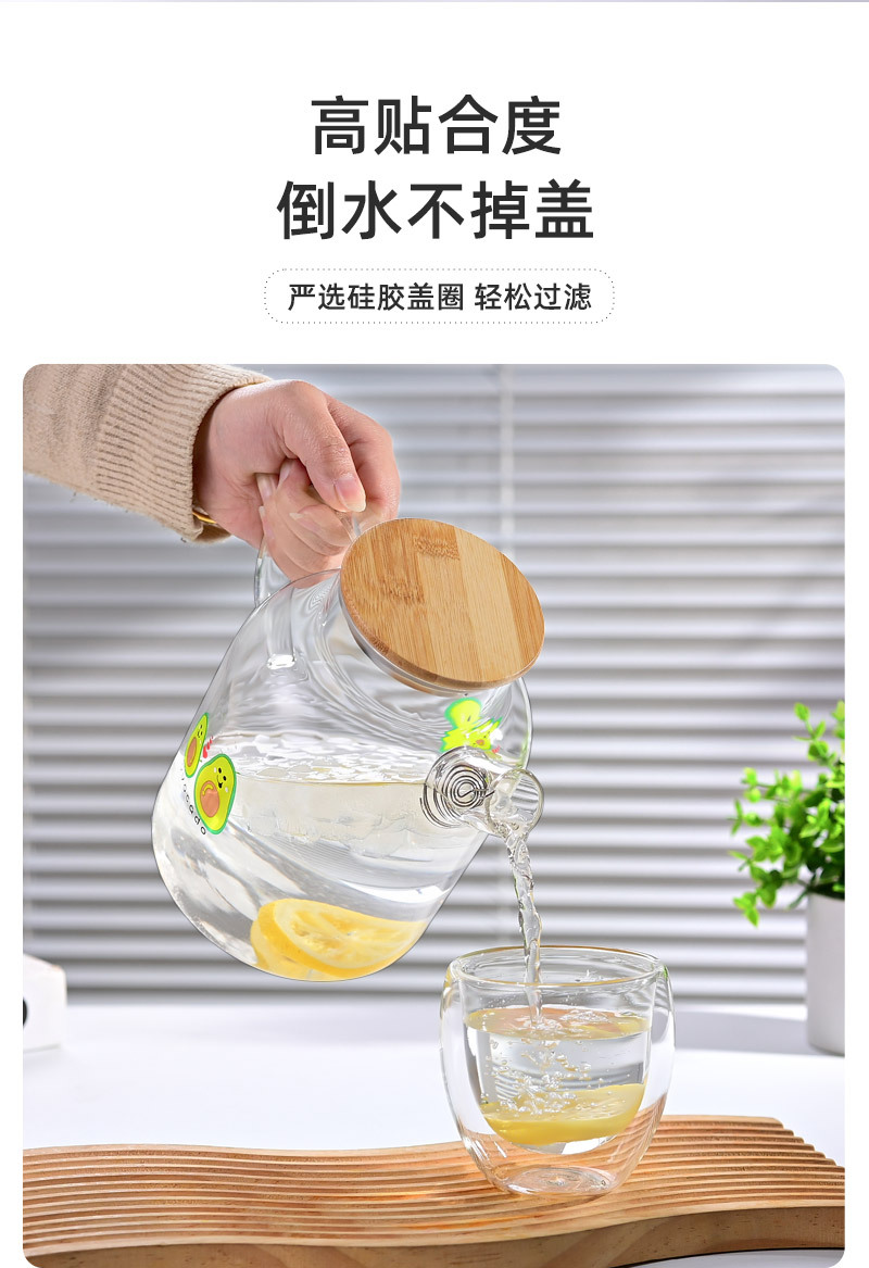 玻璃凉水壶耐高温果汁壶大容量透明家用水壶高硼硅耐热玻璃冷水壶