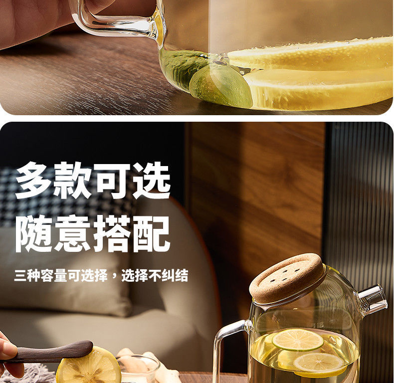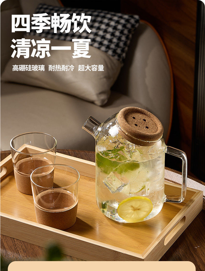 冷水壶日式家用大容量凉水壶高硼硅玻璃泡茶壶防烫耐高温透明水壶