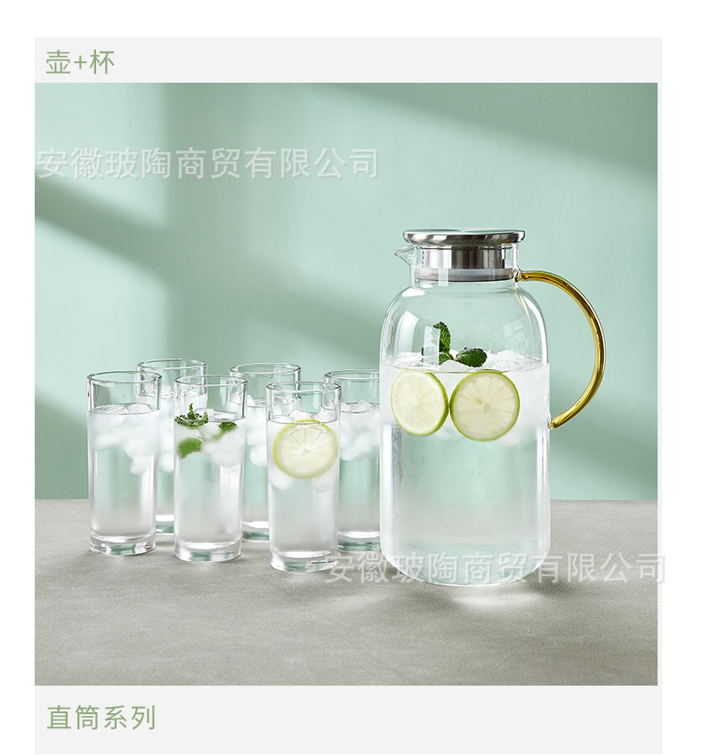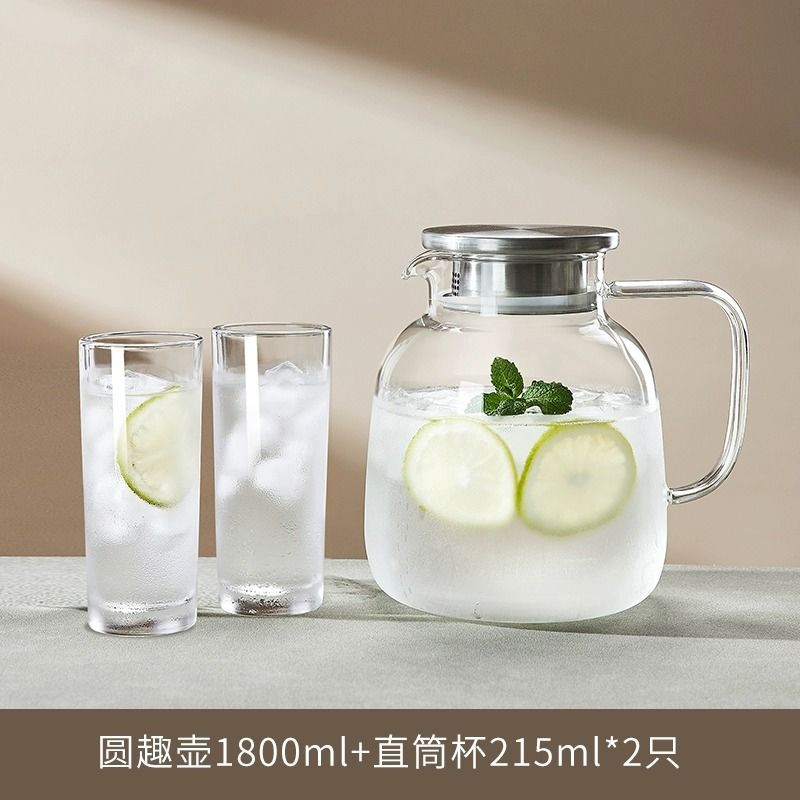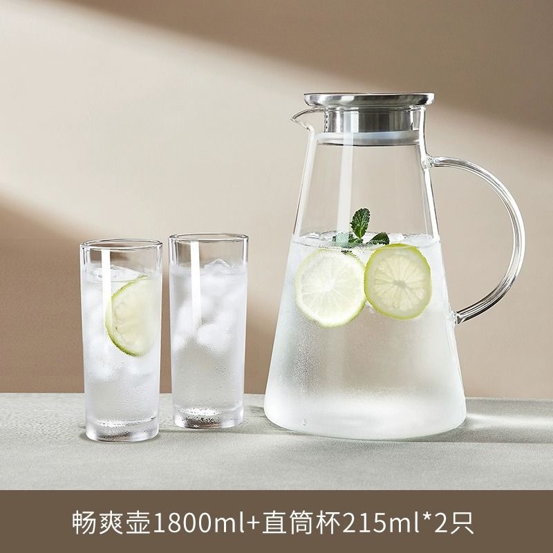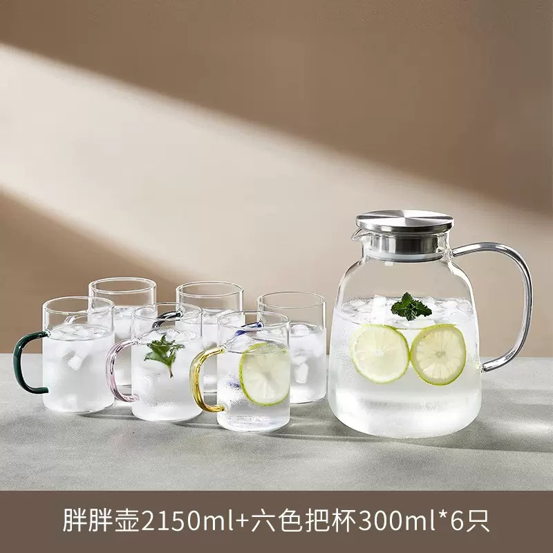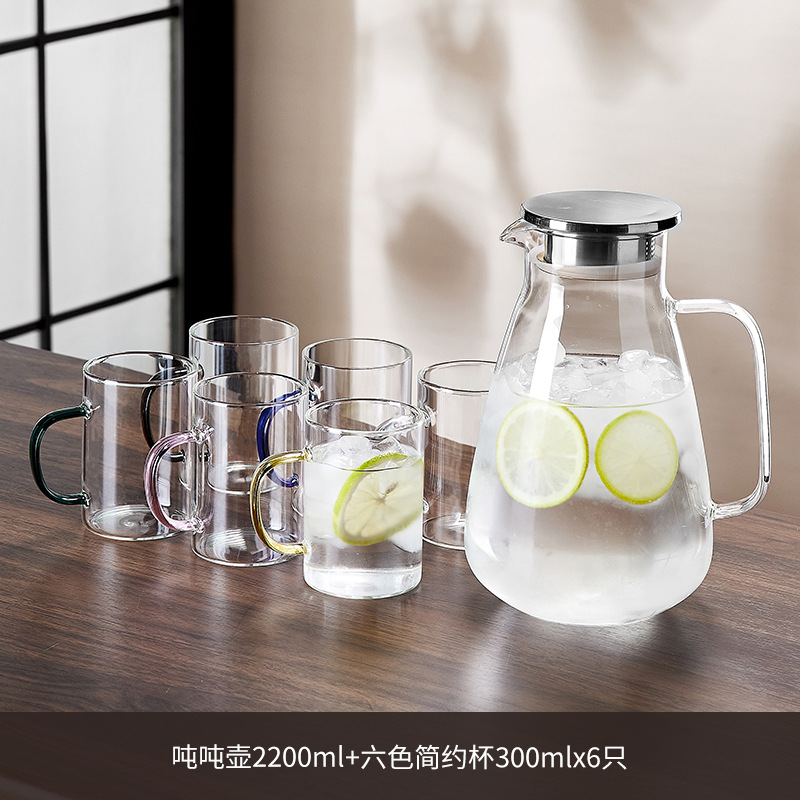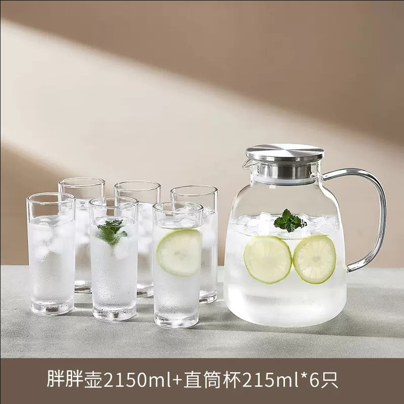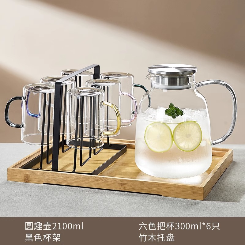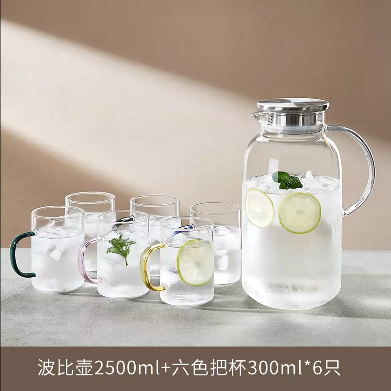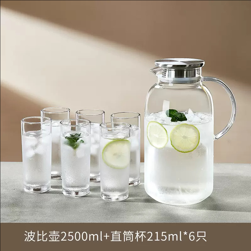 耐高温家用冷水壶大容量玻璃凉水壶冷泡茶壶白开水杯装水扎壶套装