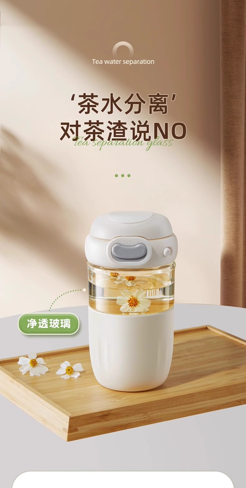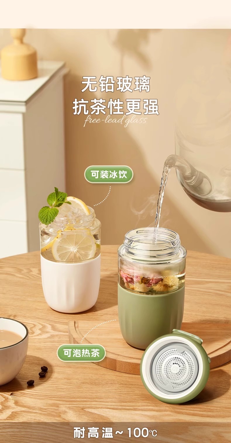 草莓生活茶水分离杯高颜值 花茶杯 高档喝茶杯女士玻璃水杯夏季女