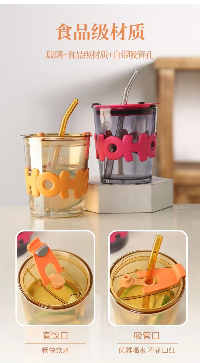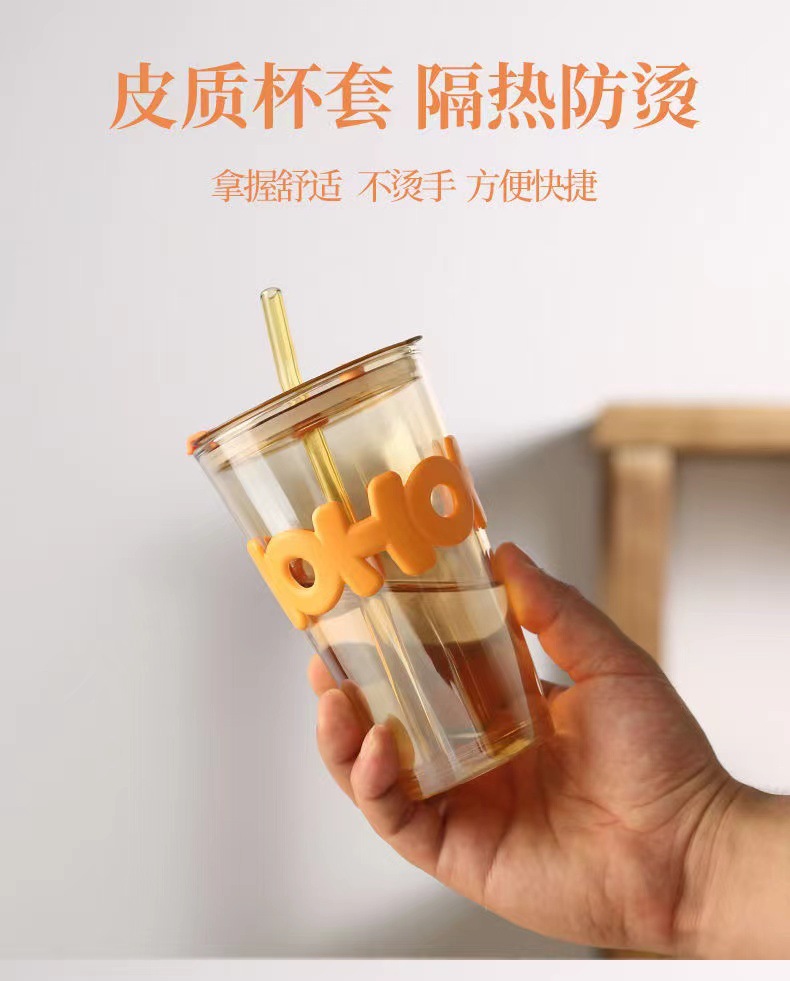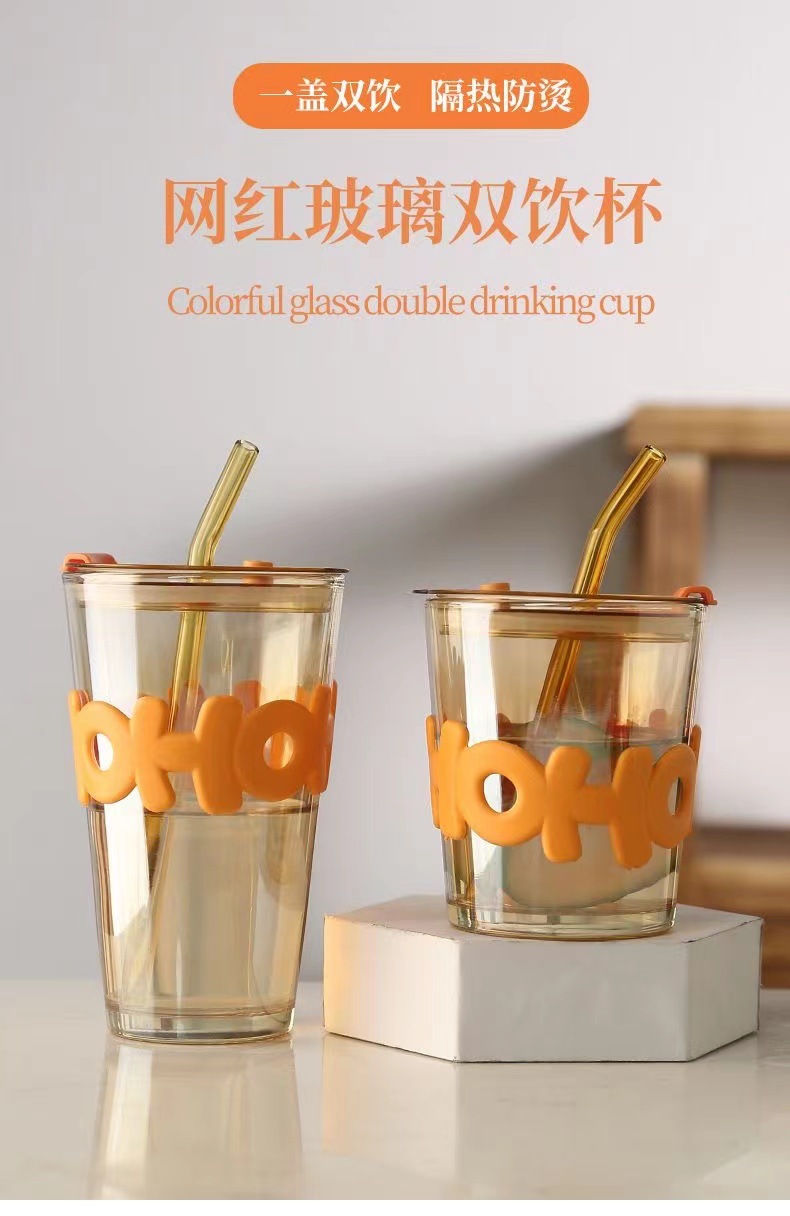 玻璃杯子女夏带吸管批发耐高温ins高级感创意高颜值字母伴手礼品