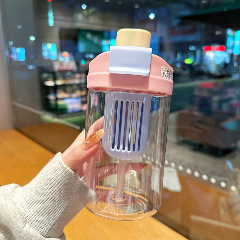 水杯女生高颜值带茶隔大容量便携双饮杯学生简约春夏吸管塑料杯子
