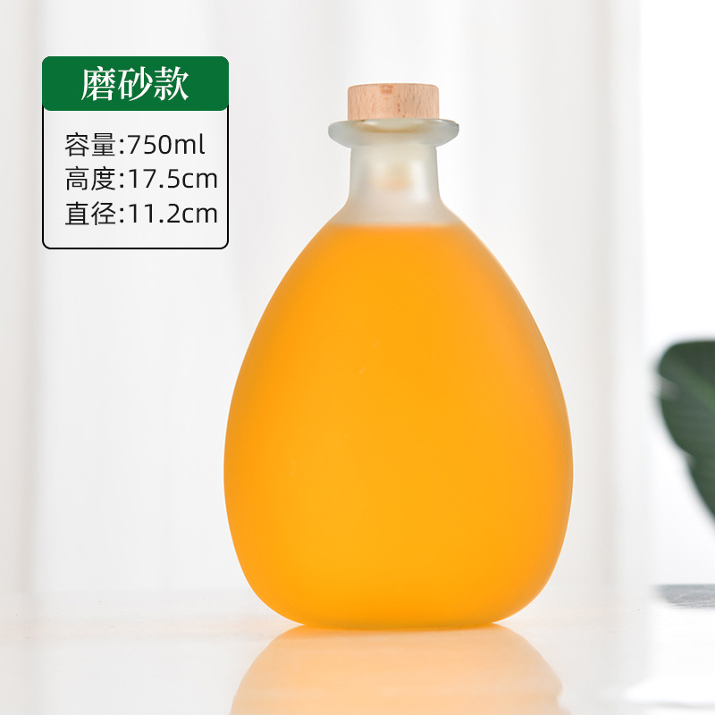 果酒瓶子250ml磨砂透明玻璃酒瓶空瓶高颜值密封自酿梅酒瓶带标签