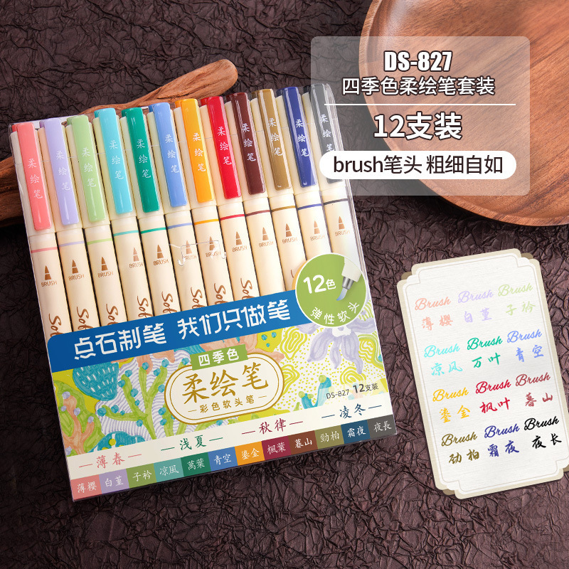 点石DS-827柔绘笔套装彩色手账Brush书法软头勾线秀丽笔文具批发
