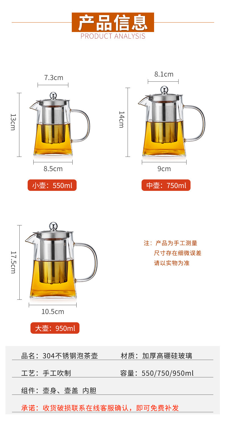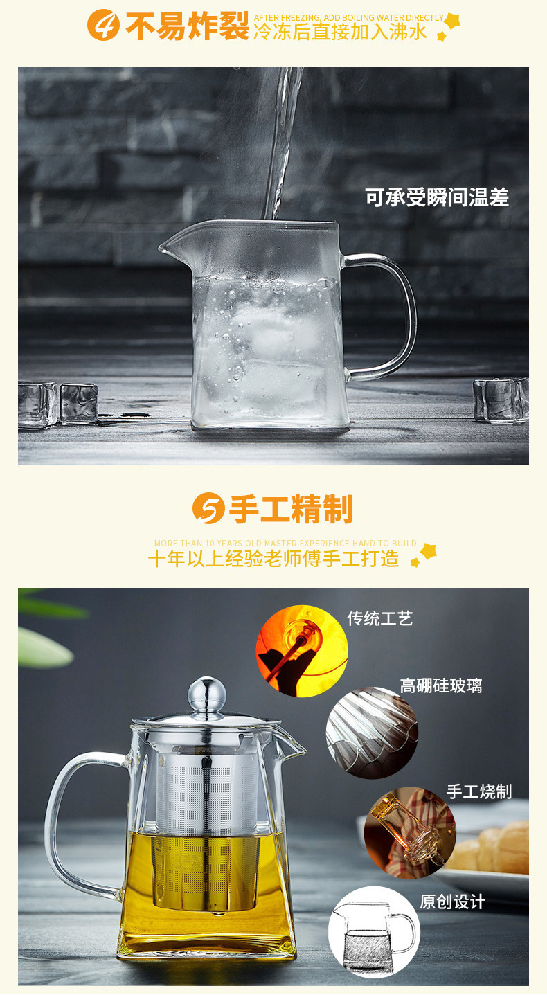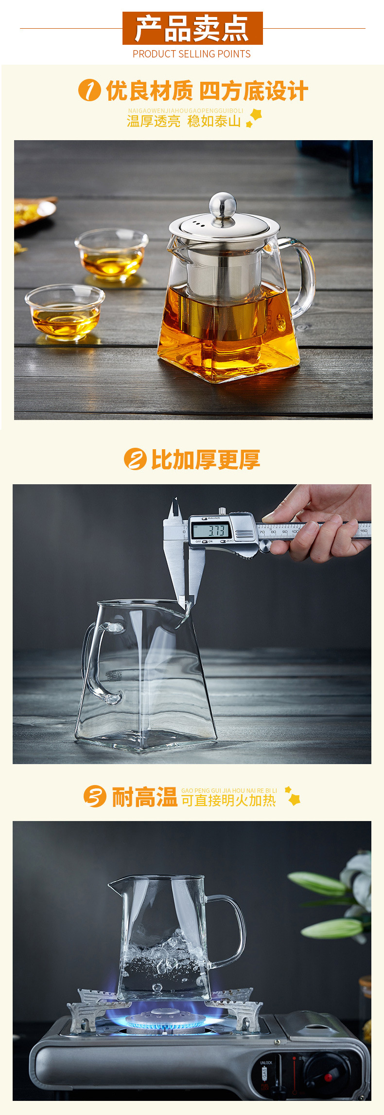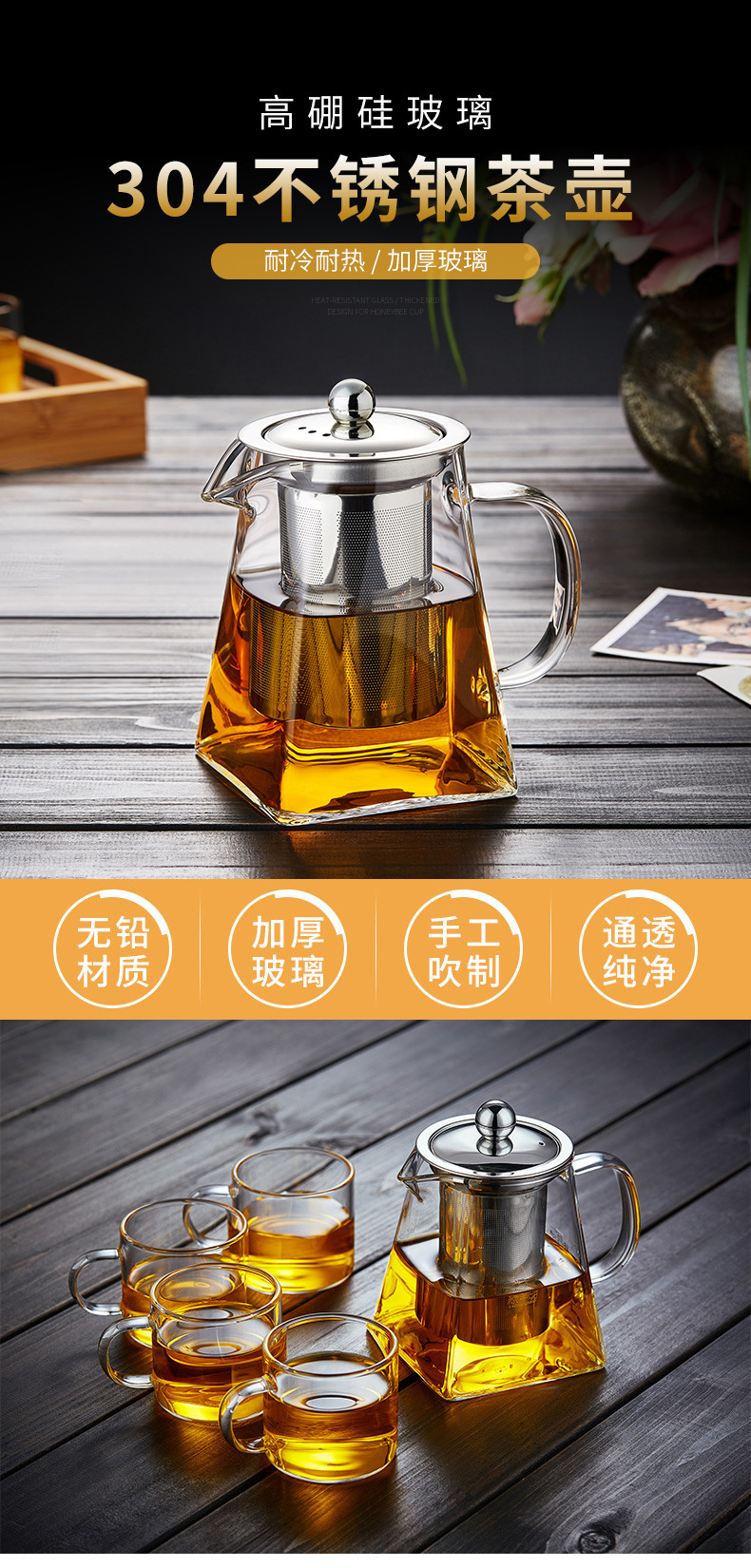 创意天圆地方耐高温玻璃茶壶不锈钢过滤功夫茶壶可电陶炉煮茶壶