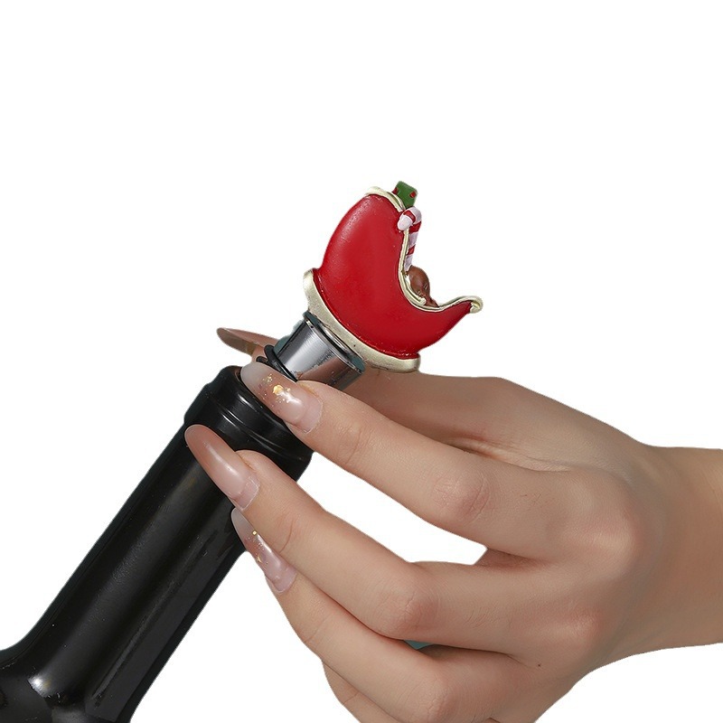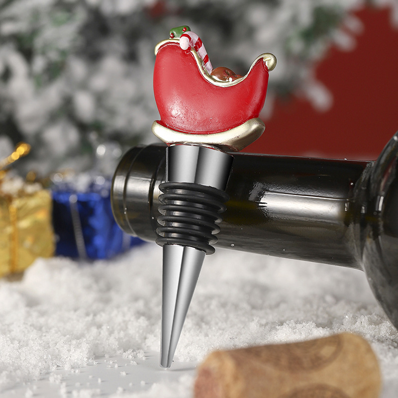 跨境欧美葡萄酒保鲜塞红酒塞创意圣诞节礼物派对聚会树脂圣诞推车