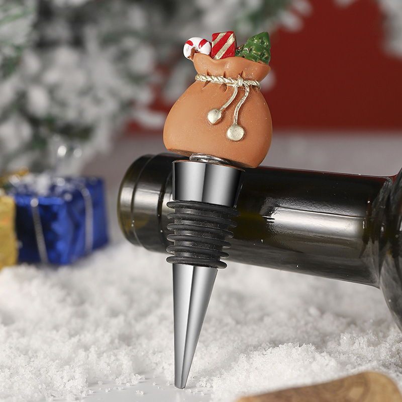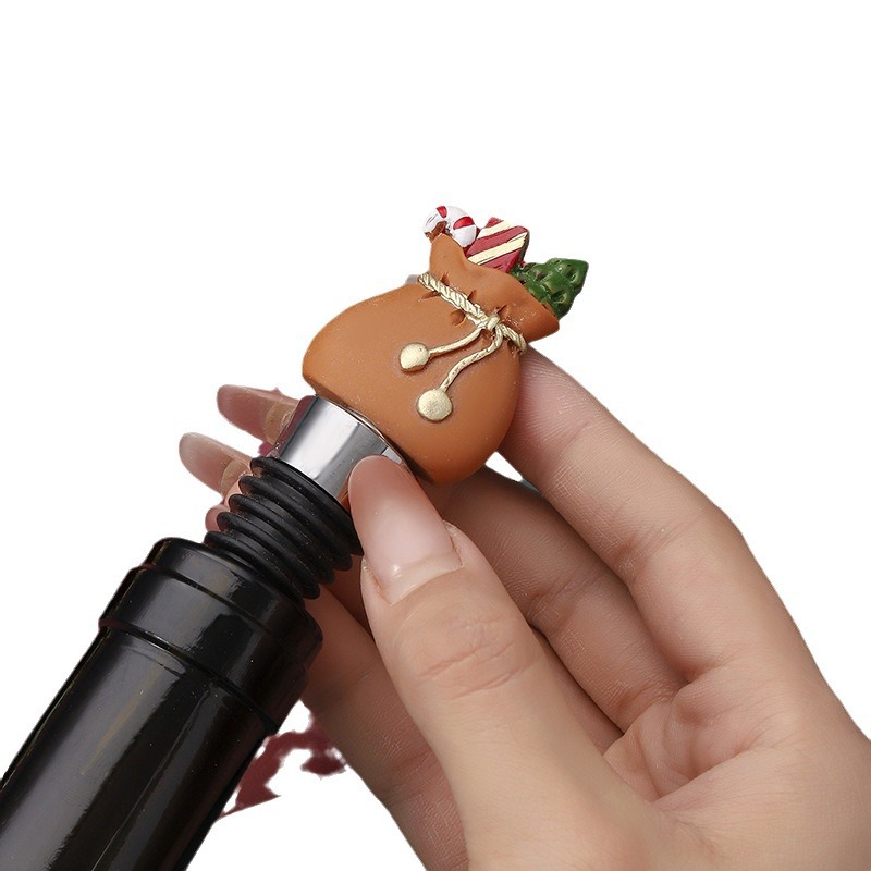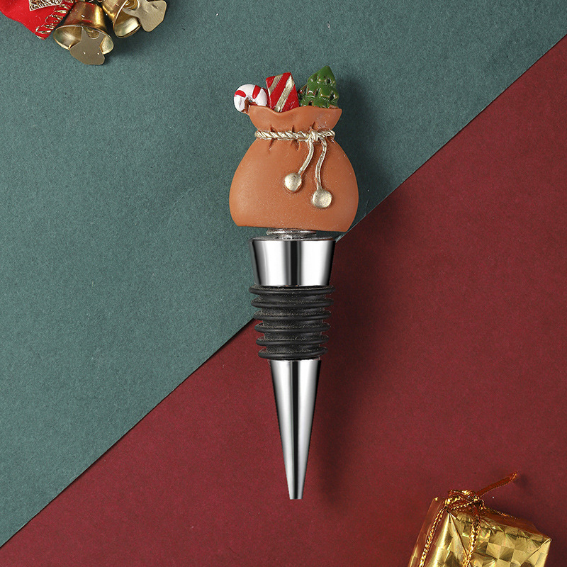 2024新款创意圣诞节酒具装饰礼品派对聚会葡萄红酒塞树脂圣诞背包