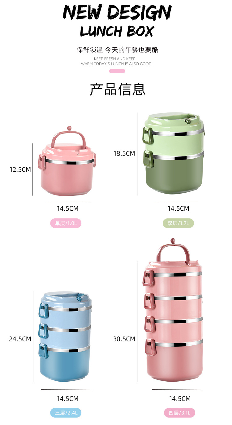 多层保温防溢饭盒 学生上班族304不锈钢大容量手提便携餐盒便当盒