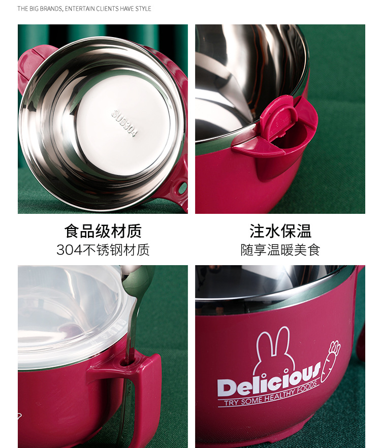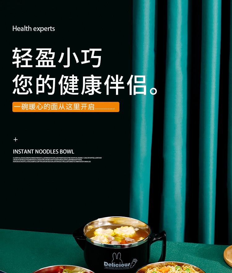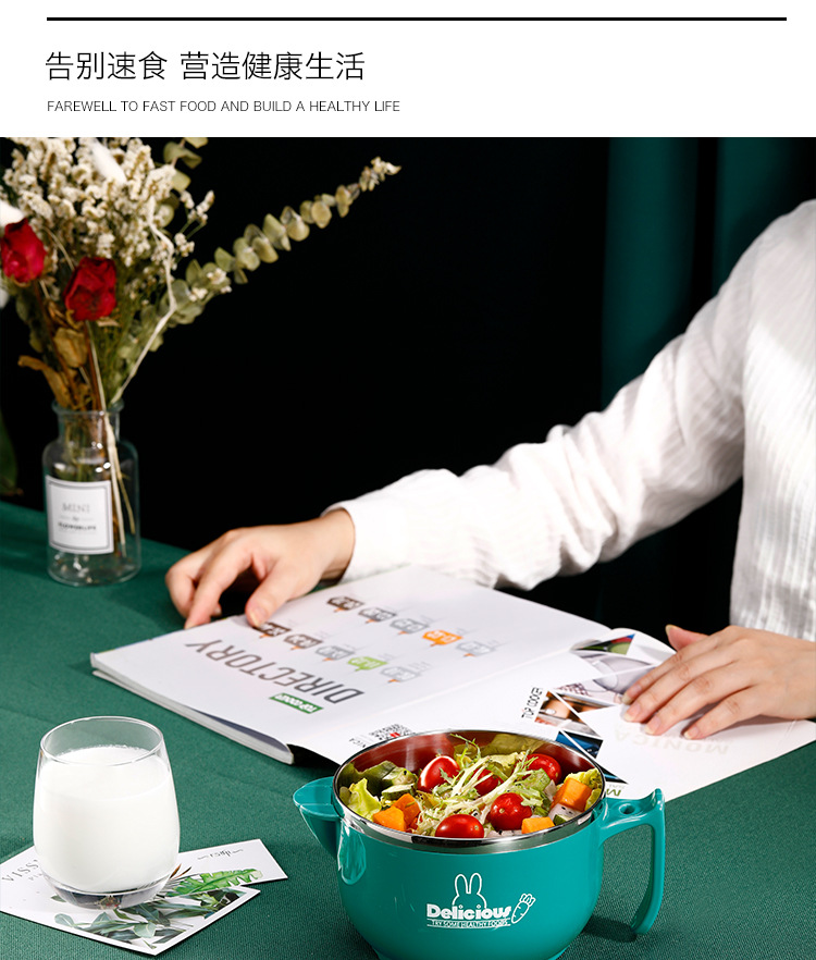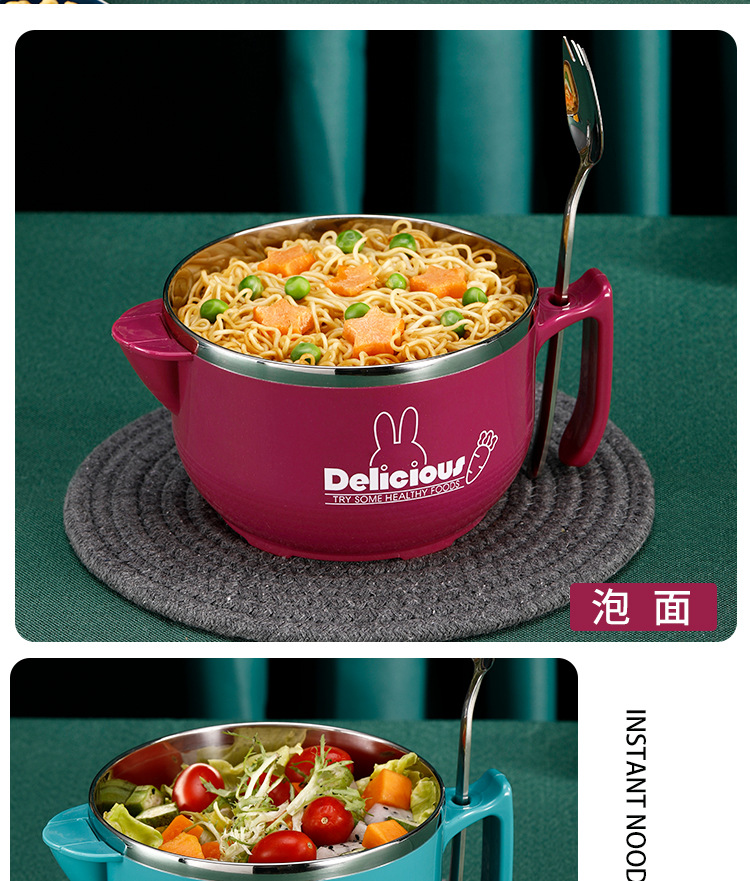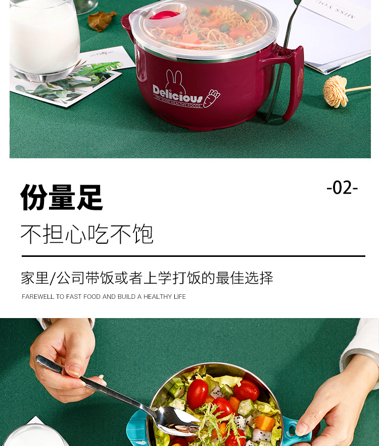 304不锈钢泡面杯带盖防烫学生宿舍不锈钢 手提上班族简约饭盒快餐
