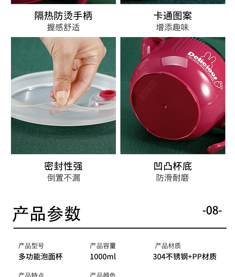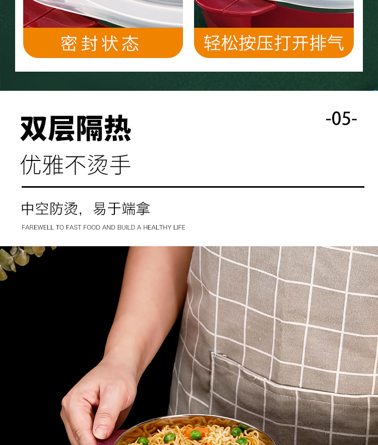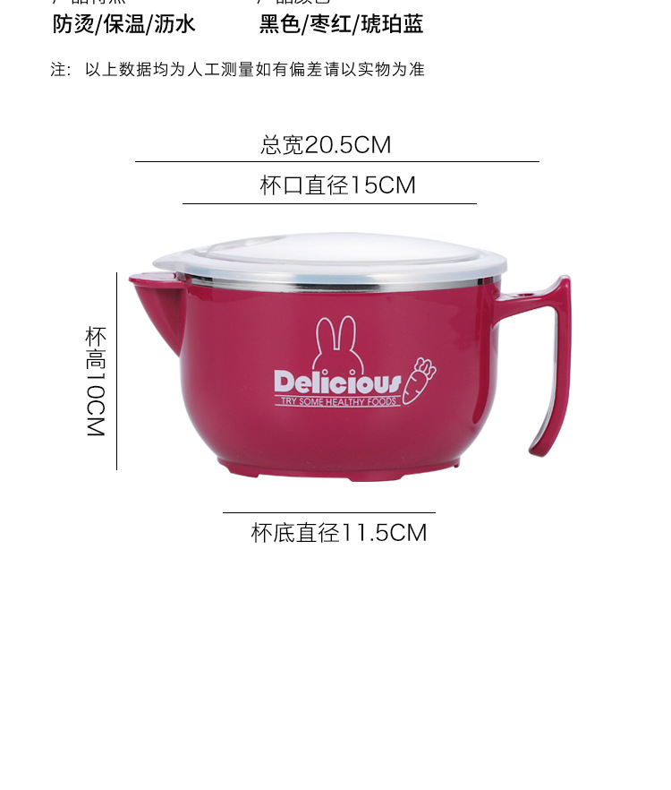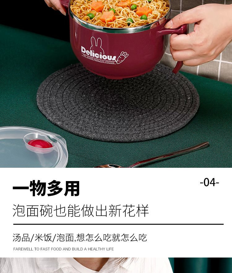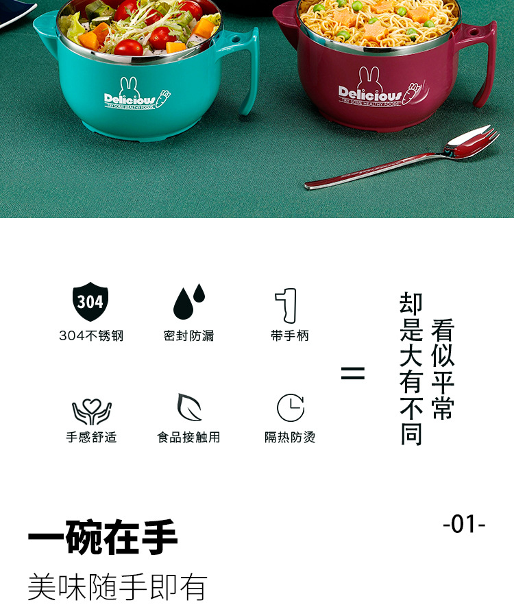 304不锈钢泡面杯带盖防烫学生宿舍不锈钢 手提上班族简约饭盒快餐