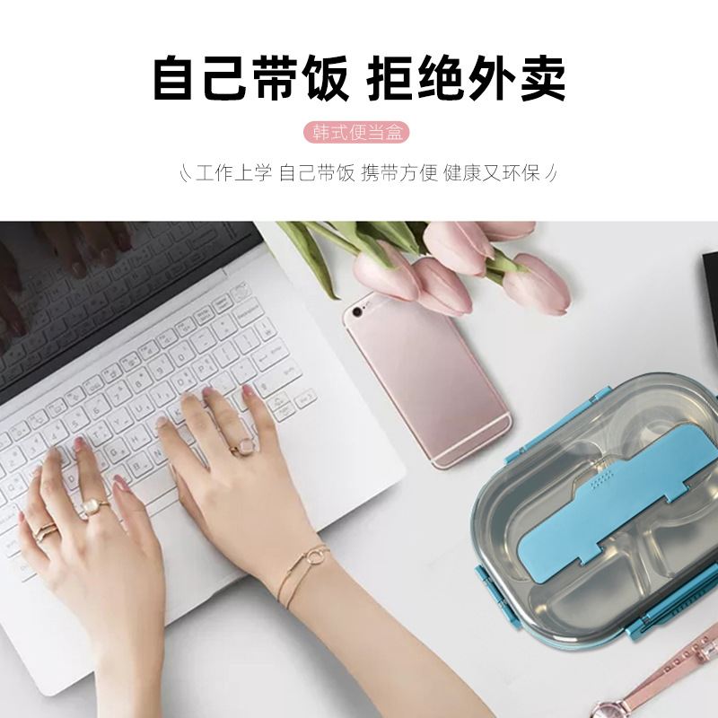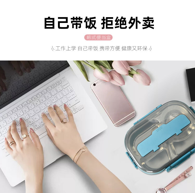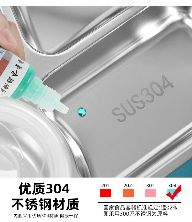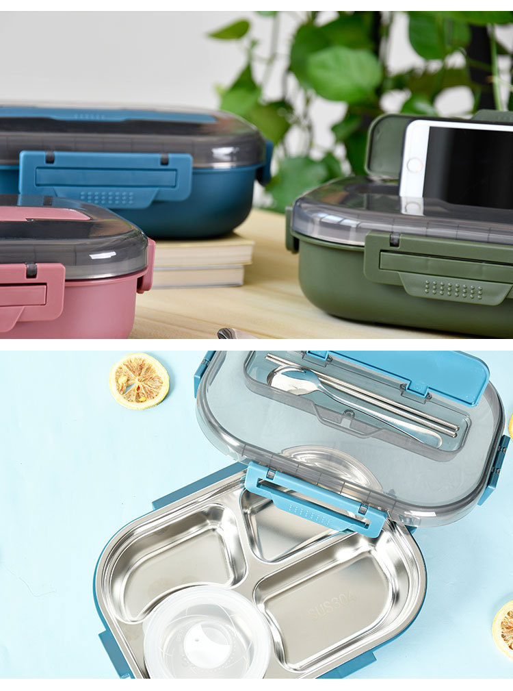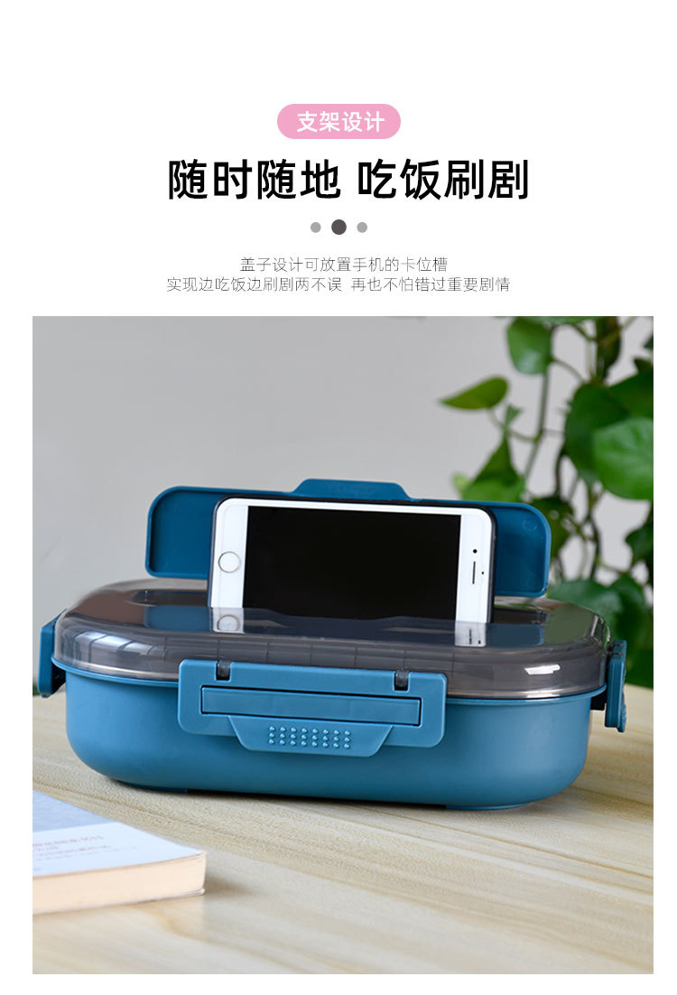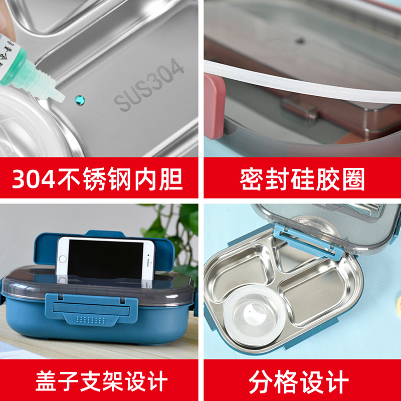 大容量304餐盘四格汤碗餐具防漏学生儿童 成年人带饭神器手机支架
