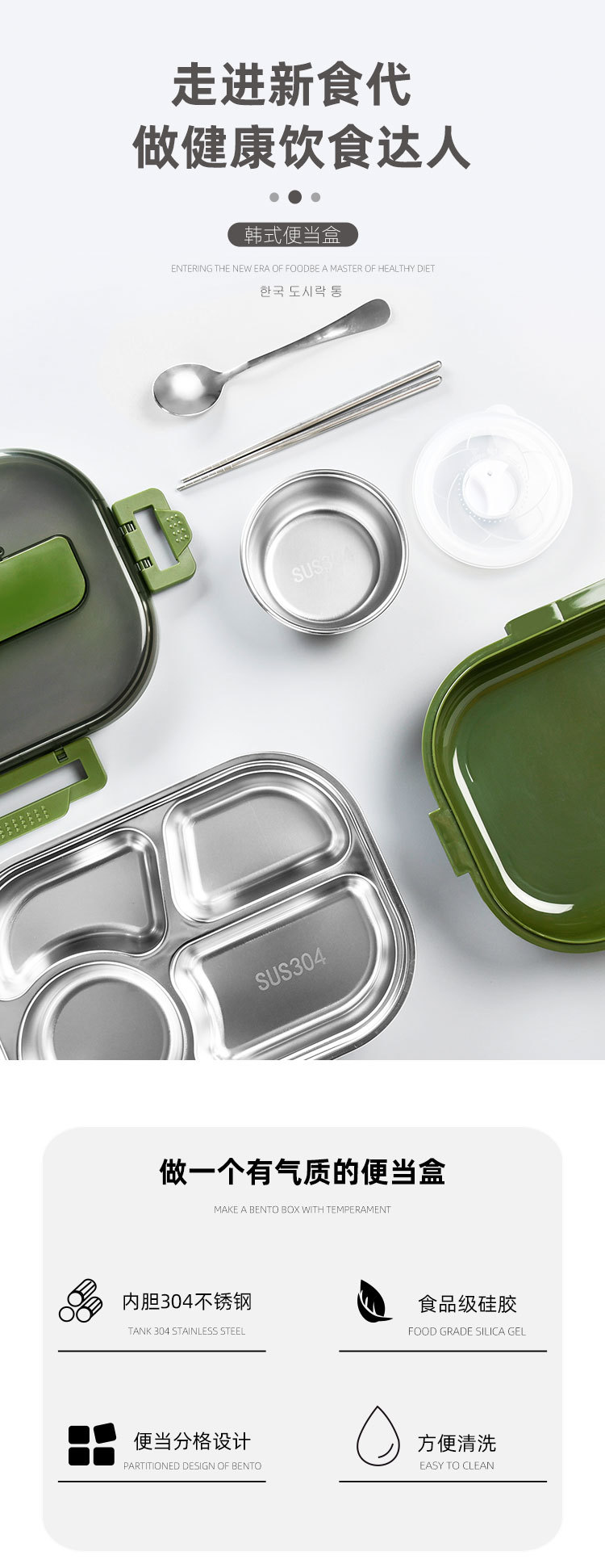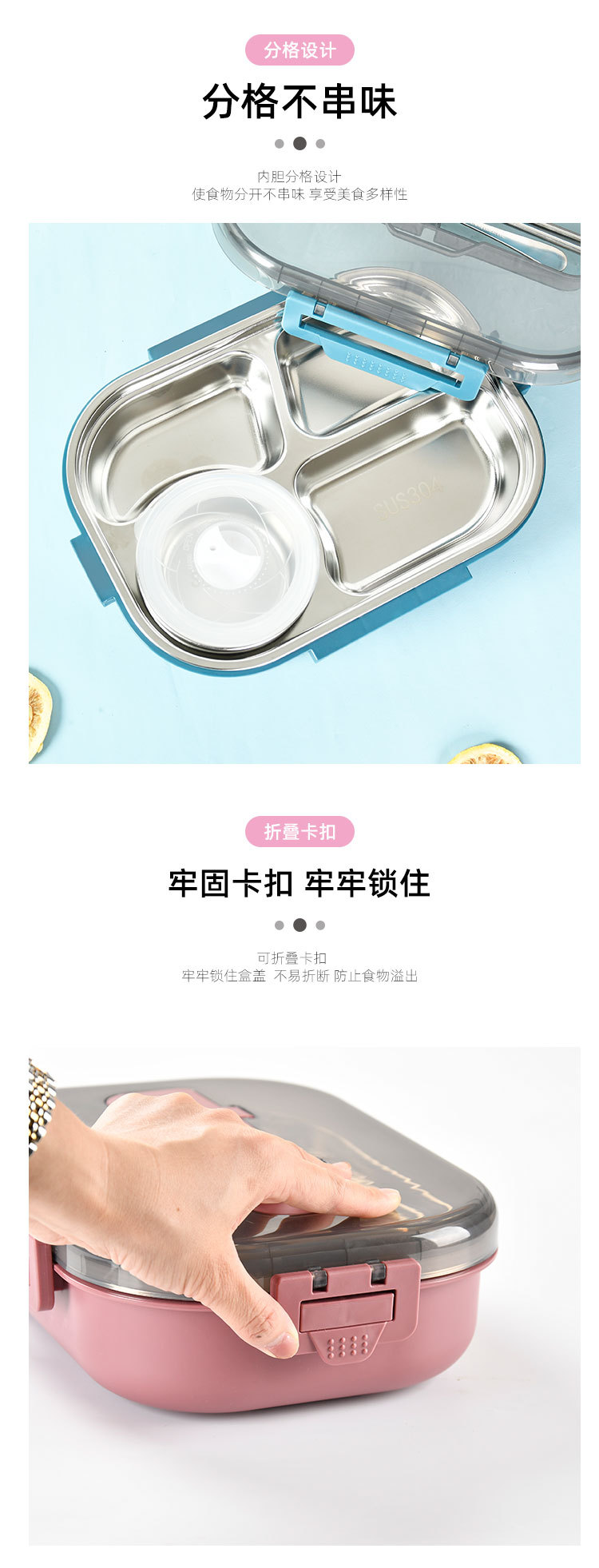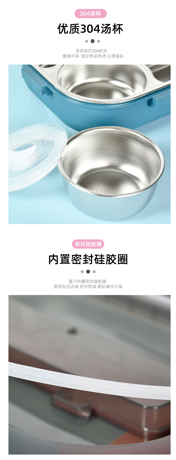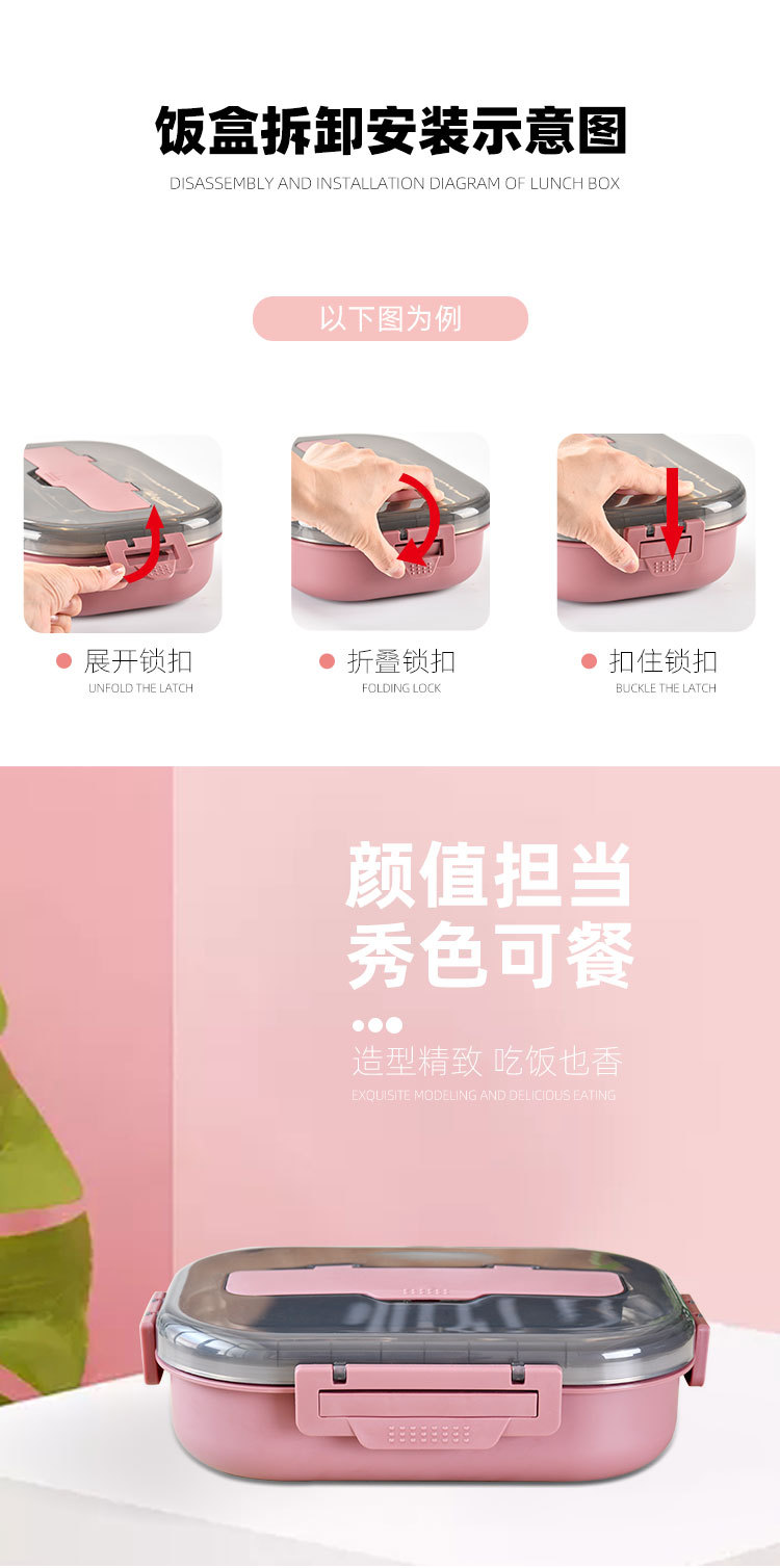 大容量304餐盘四格汤碗餐具防漏学生儿童 成年人带饭神器手机支架