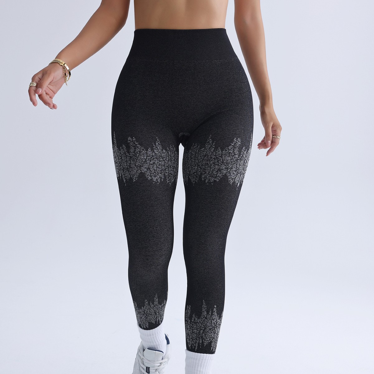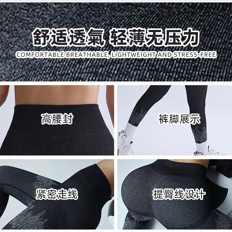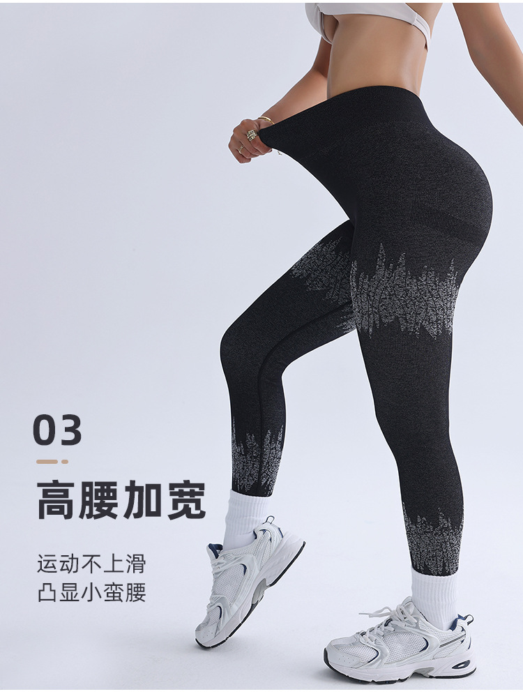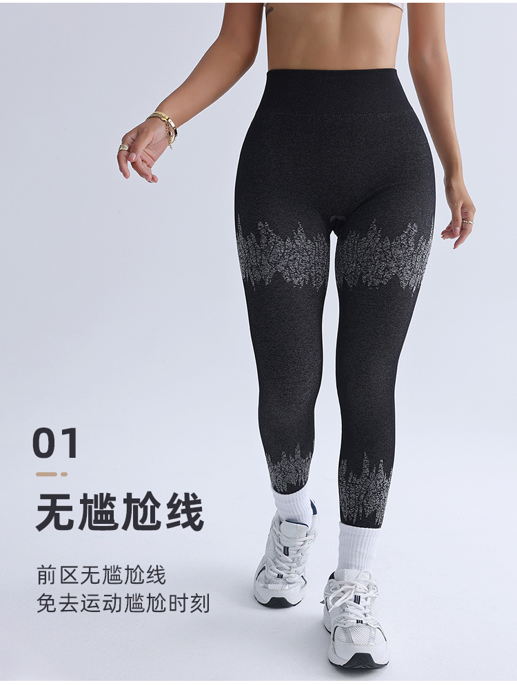 跨境爆款无缝提花瑜伽裤运动健身弹力蜜桃提臀打底裤春秋外穿长裤