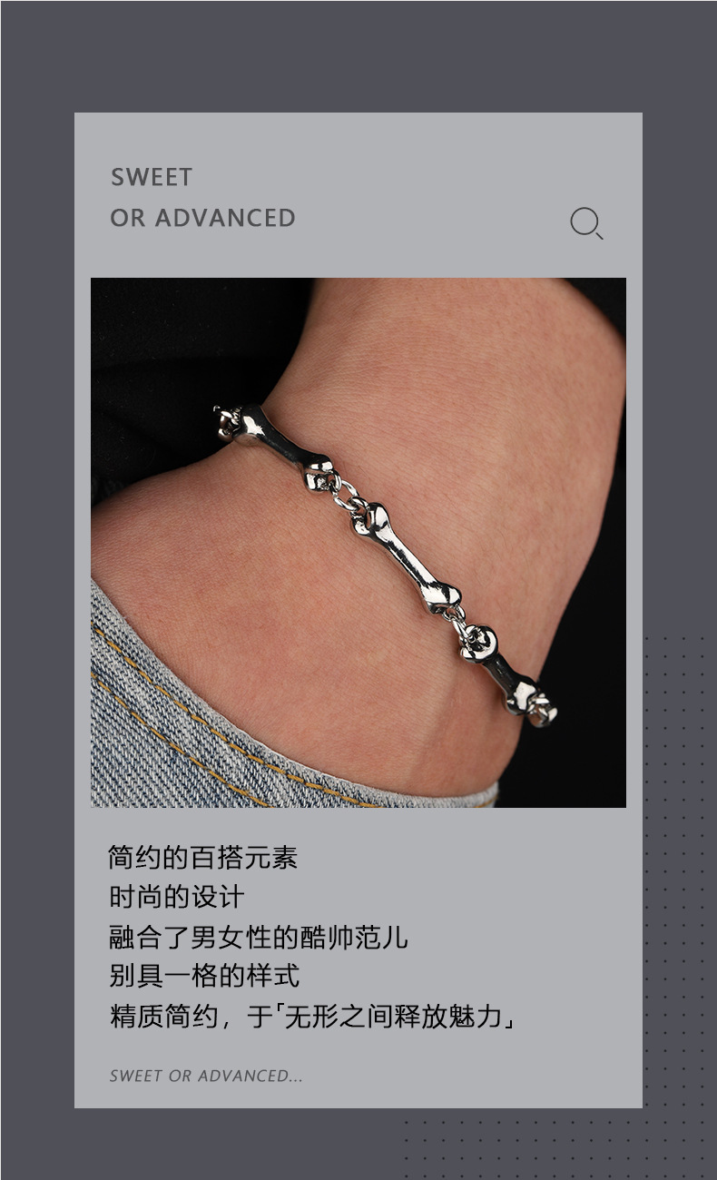 骨头串手链男潮流高级感百搭嘻哈配饰女2024新款简约小众个性饰品