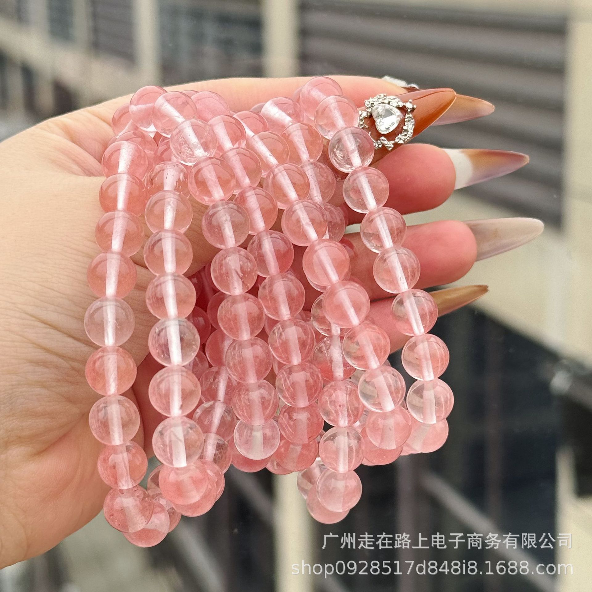 天然粉玉髓玛瑙高货原石水晶手链原创情侣礼品节日礼物批发饰品女