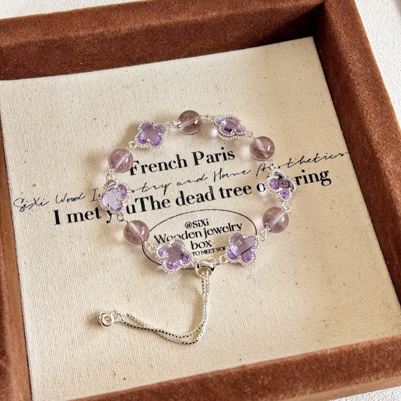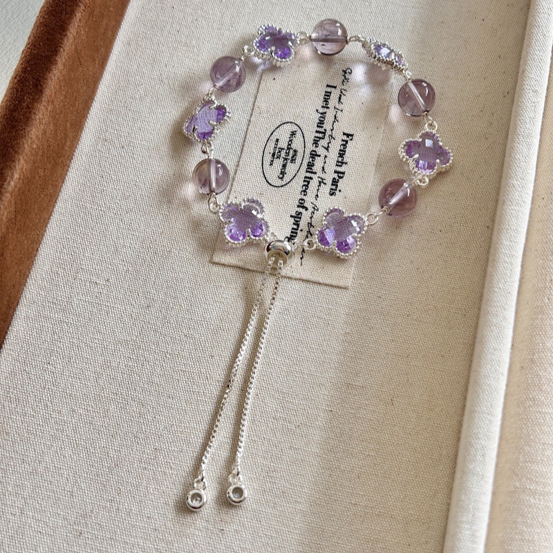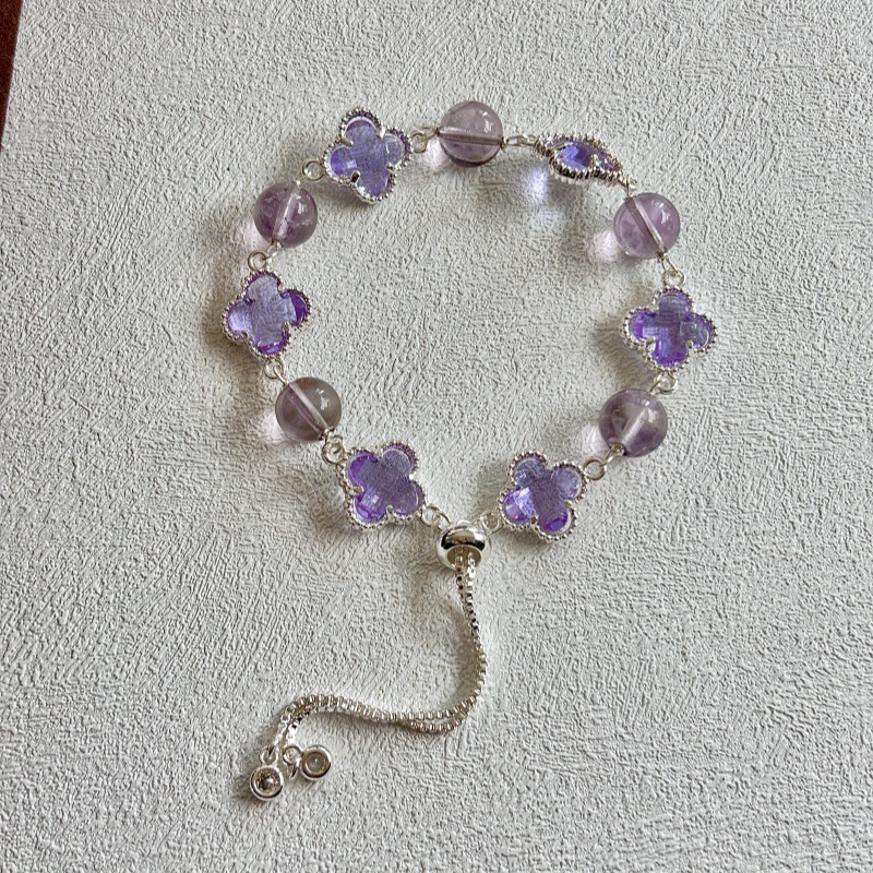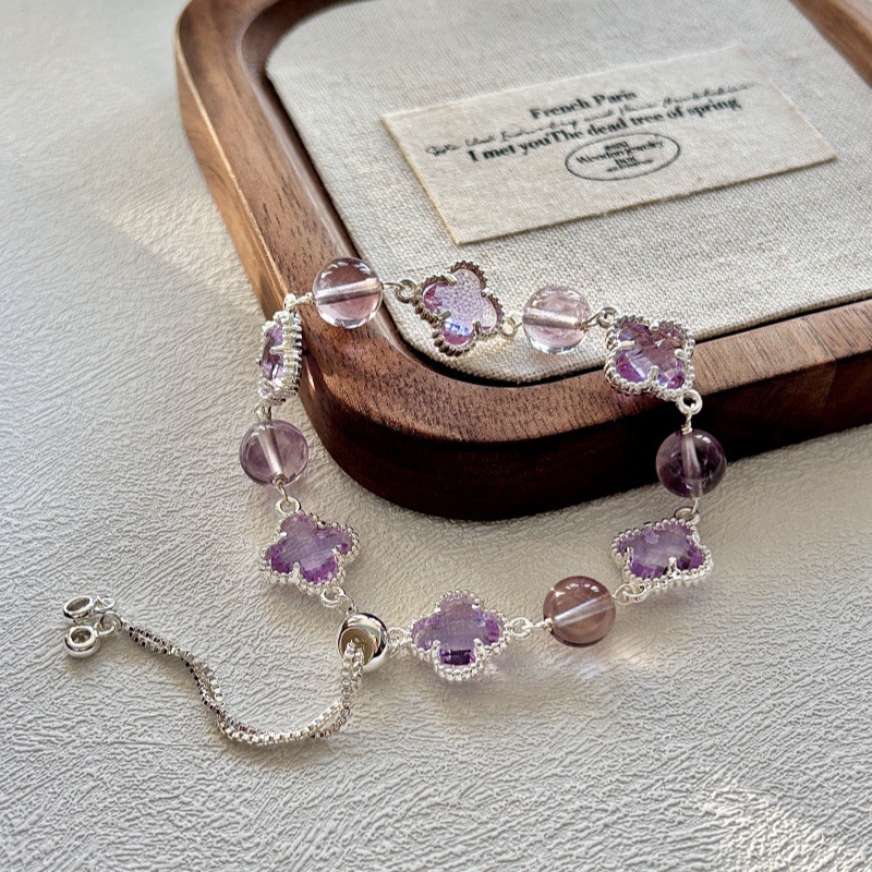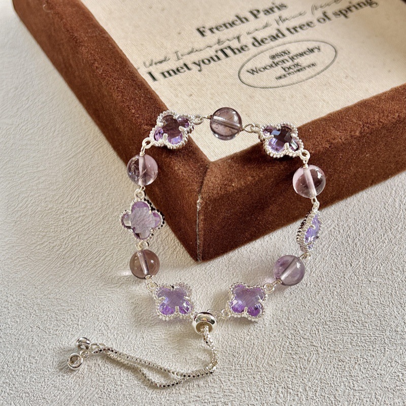 原创天然紫水晶黄水晶四叶草合金手链梦幻仙境系列手饰多样性