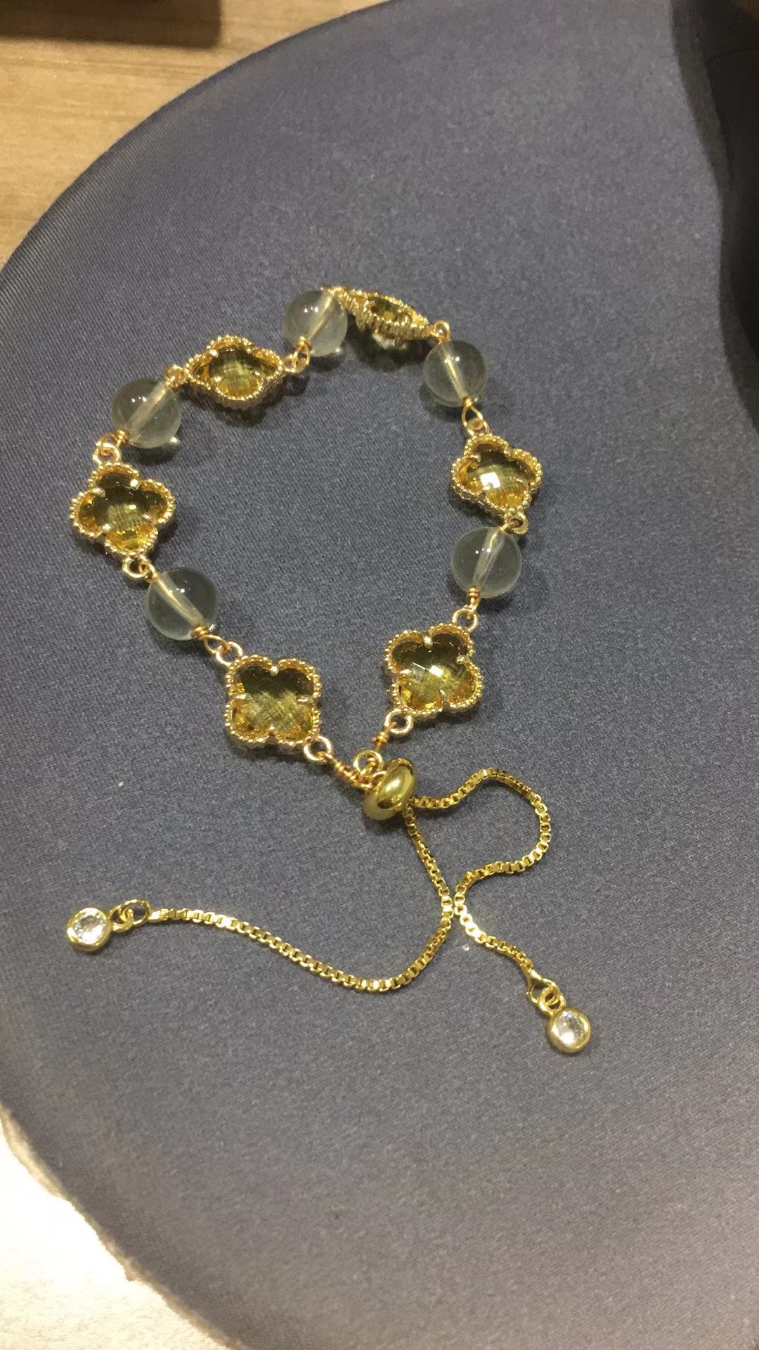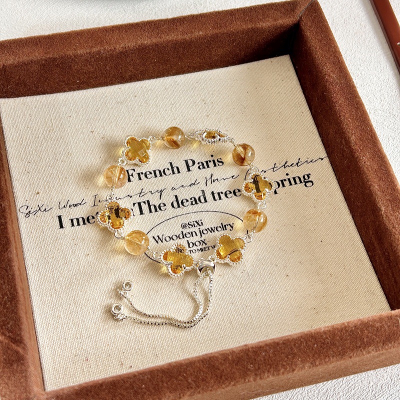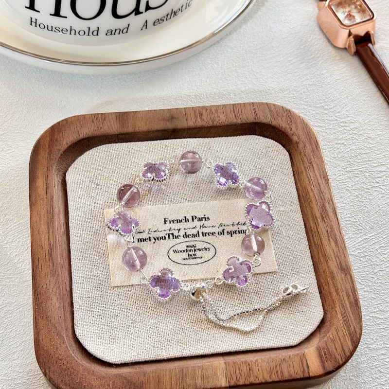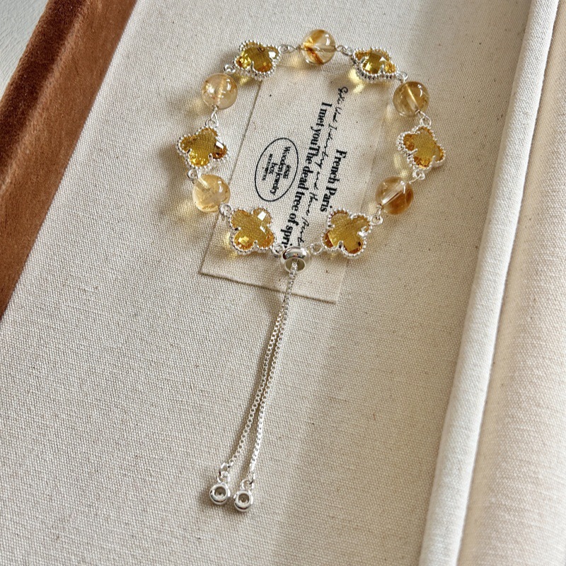 原创天然紫水晶黄水晶四叶草合金手链梦幻仙境系列手饰多样性