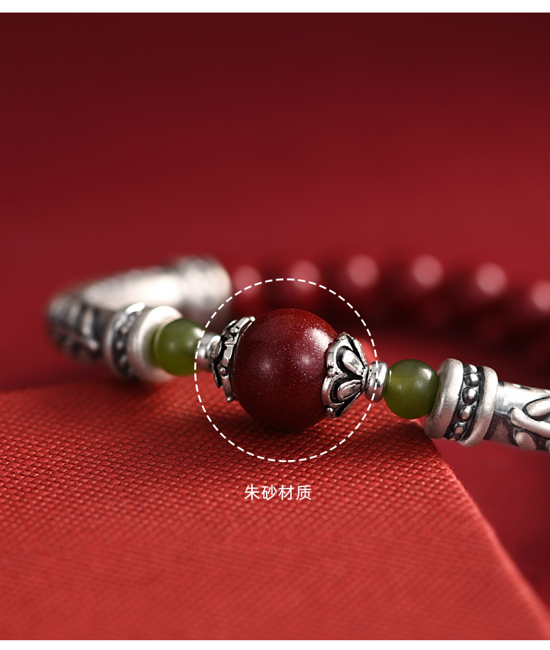 赤缘原矿朱砂S999银麦穗新中式本命年紫金砂手串手链男女士款礼物