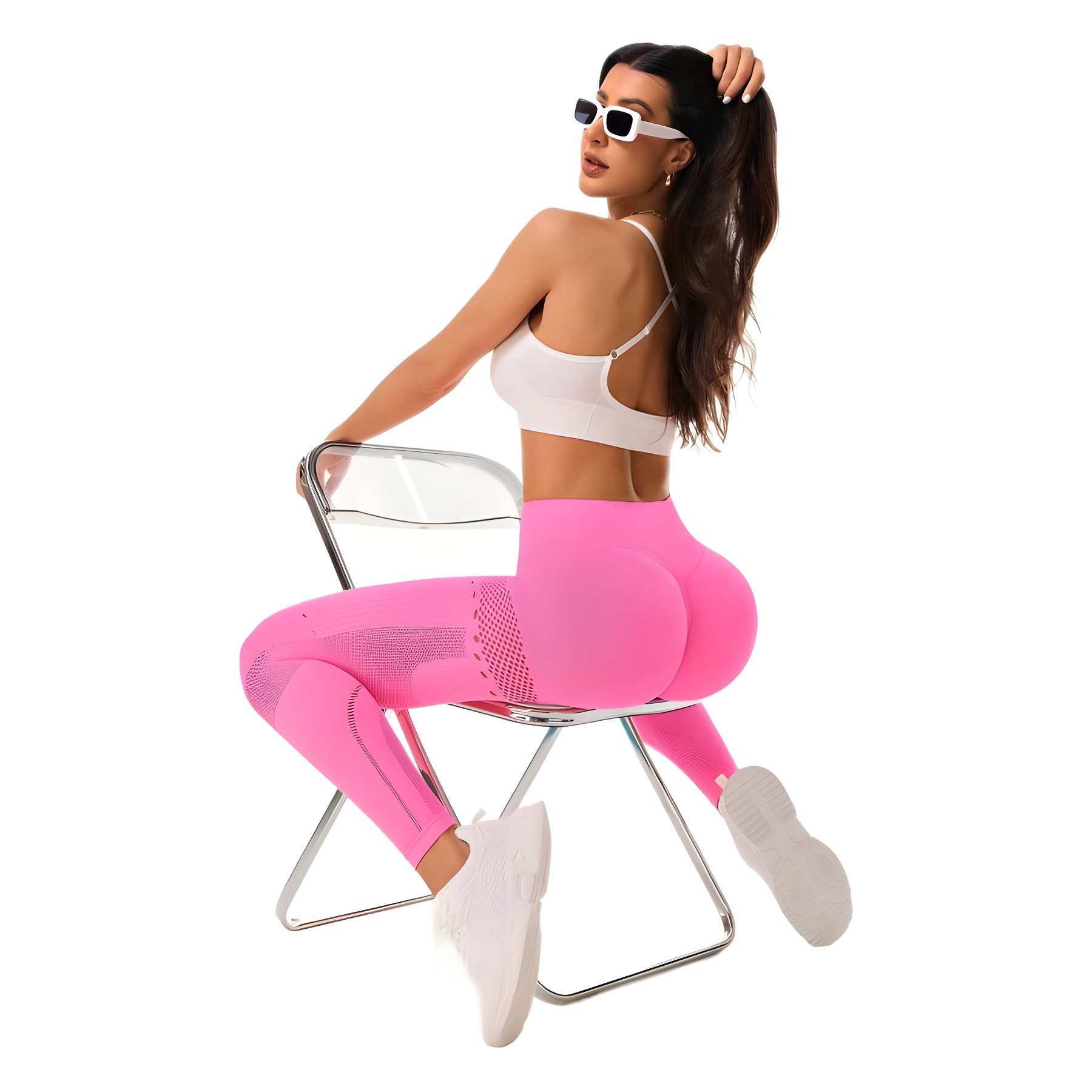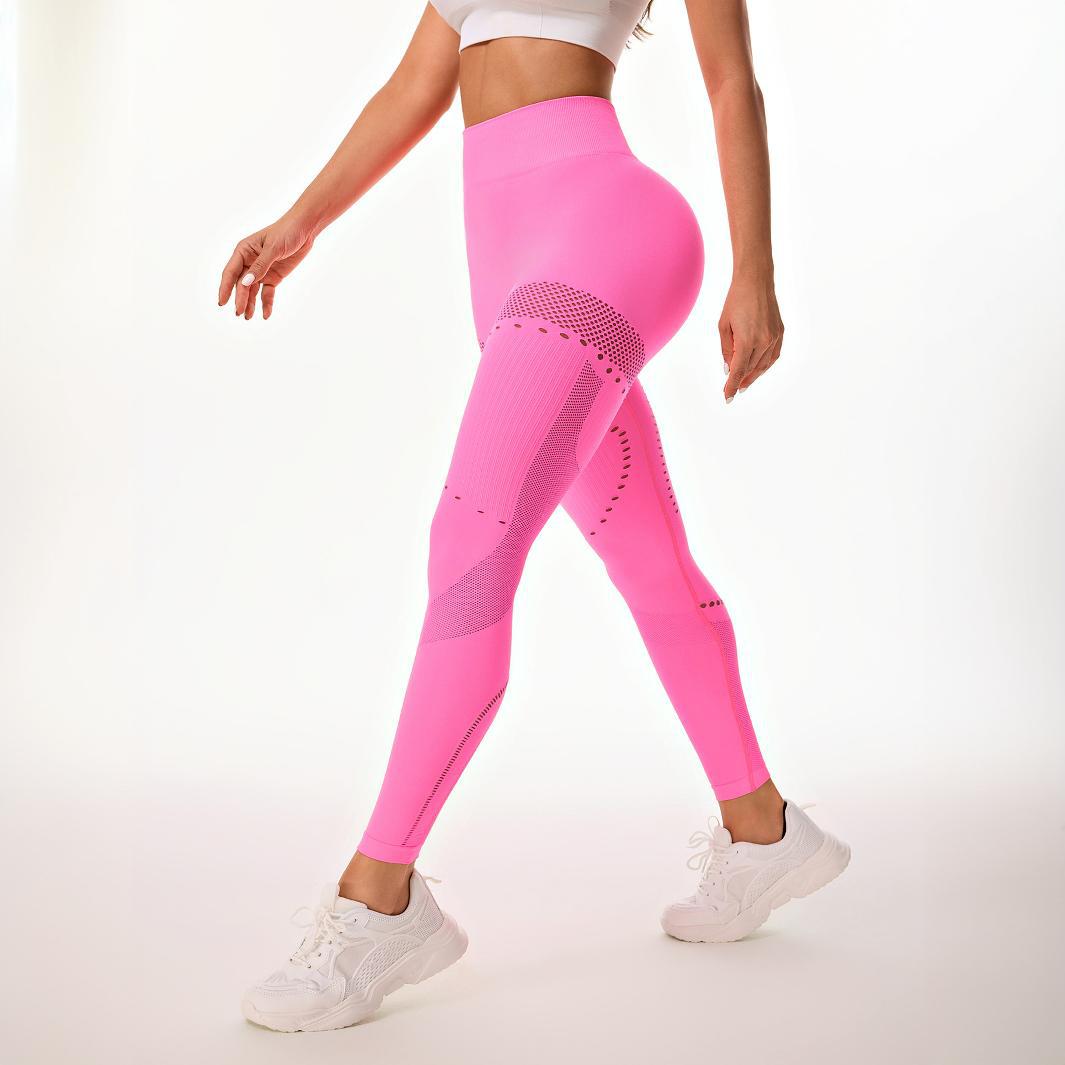 欧美跨境无缝网孔瑜伽裤女高腰蜜桃臀健身九分裤运动紧身打底长裤