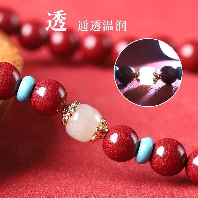 正品高含量原矿朱砂手串佛珠双圈女和田玉隔珠手链本命年新款礼物