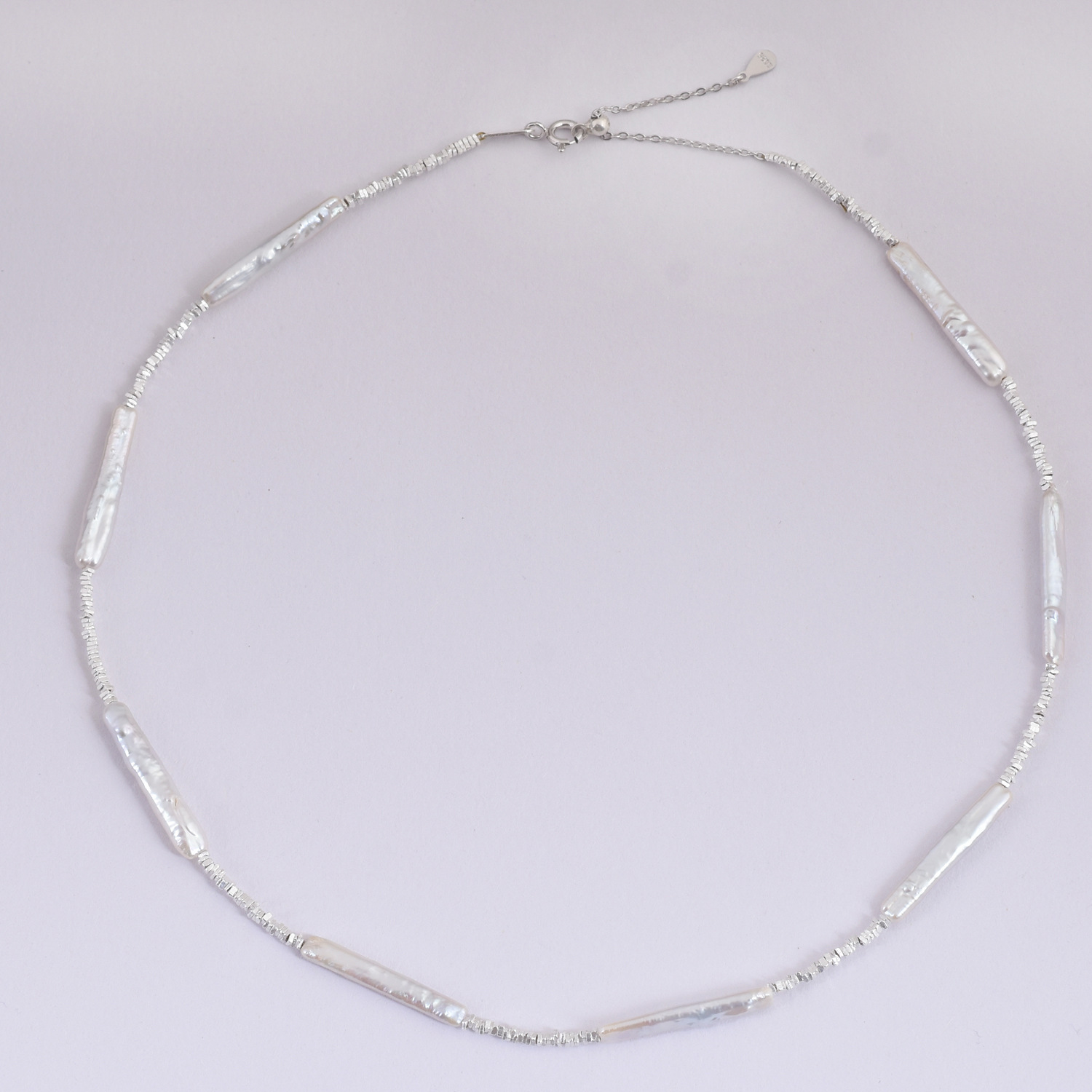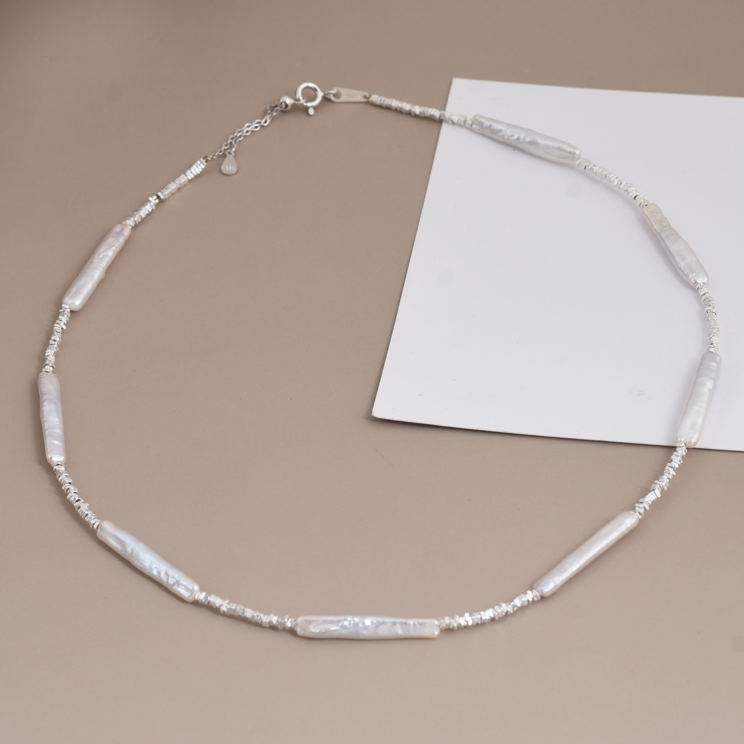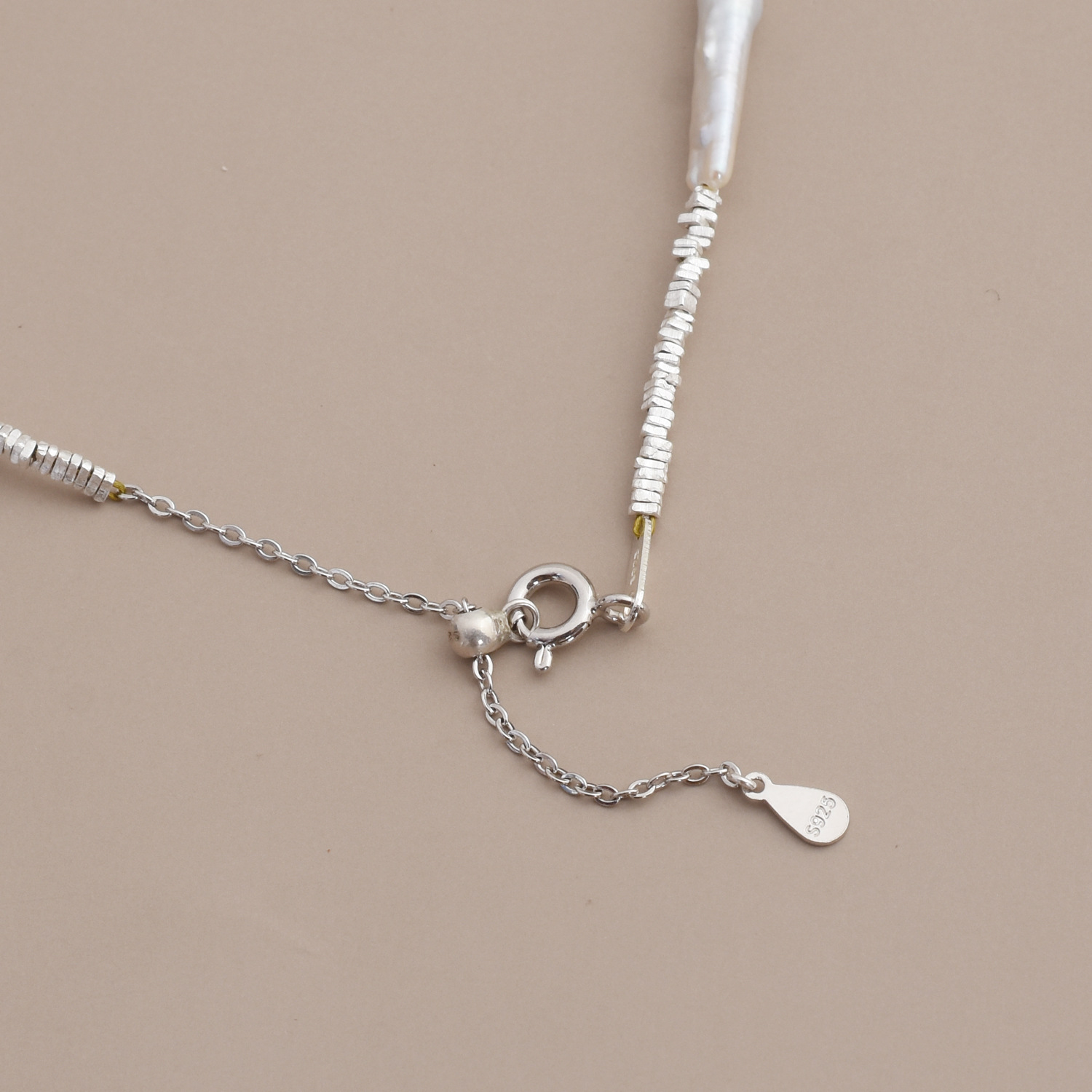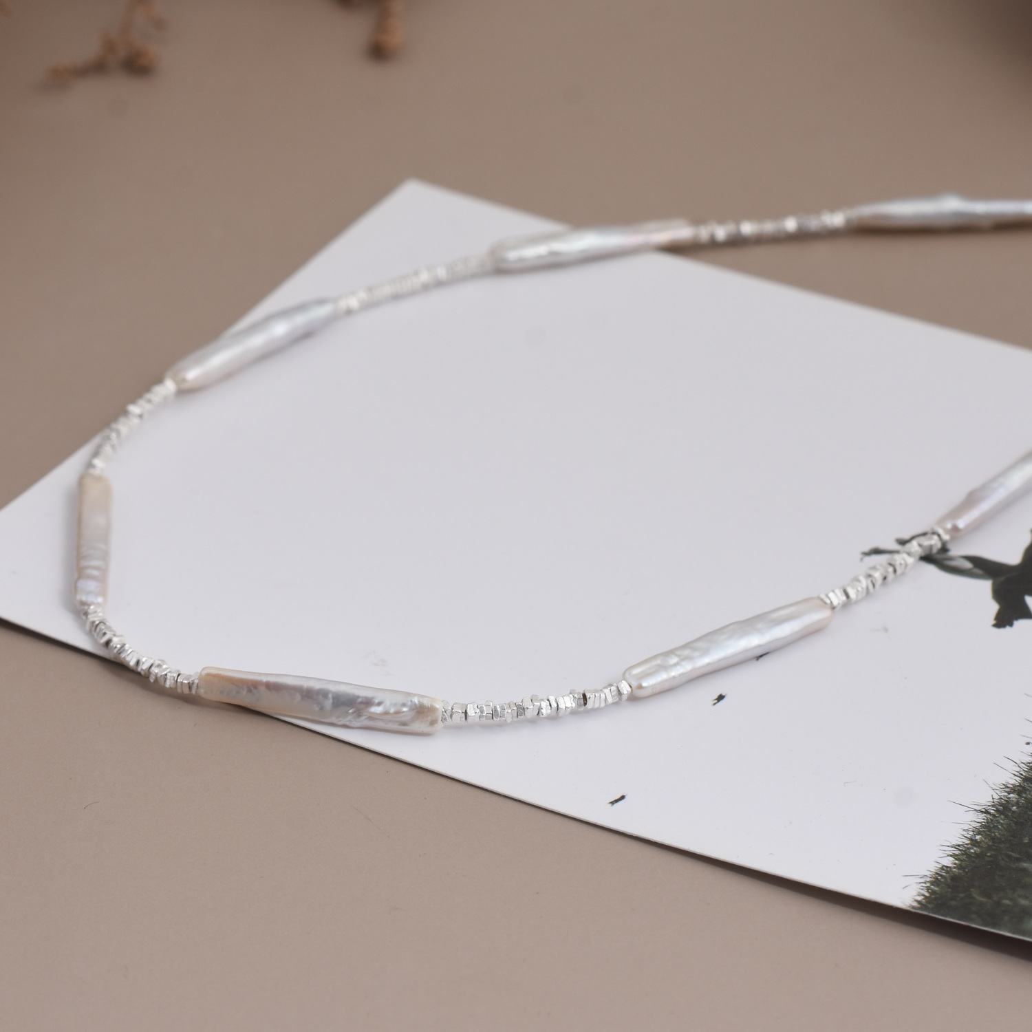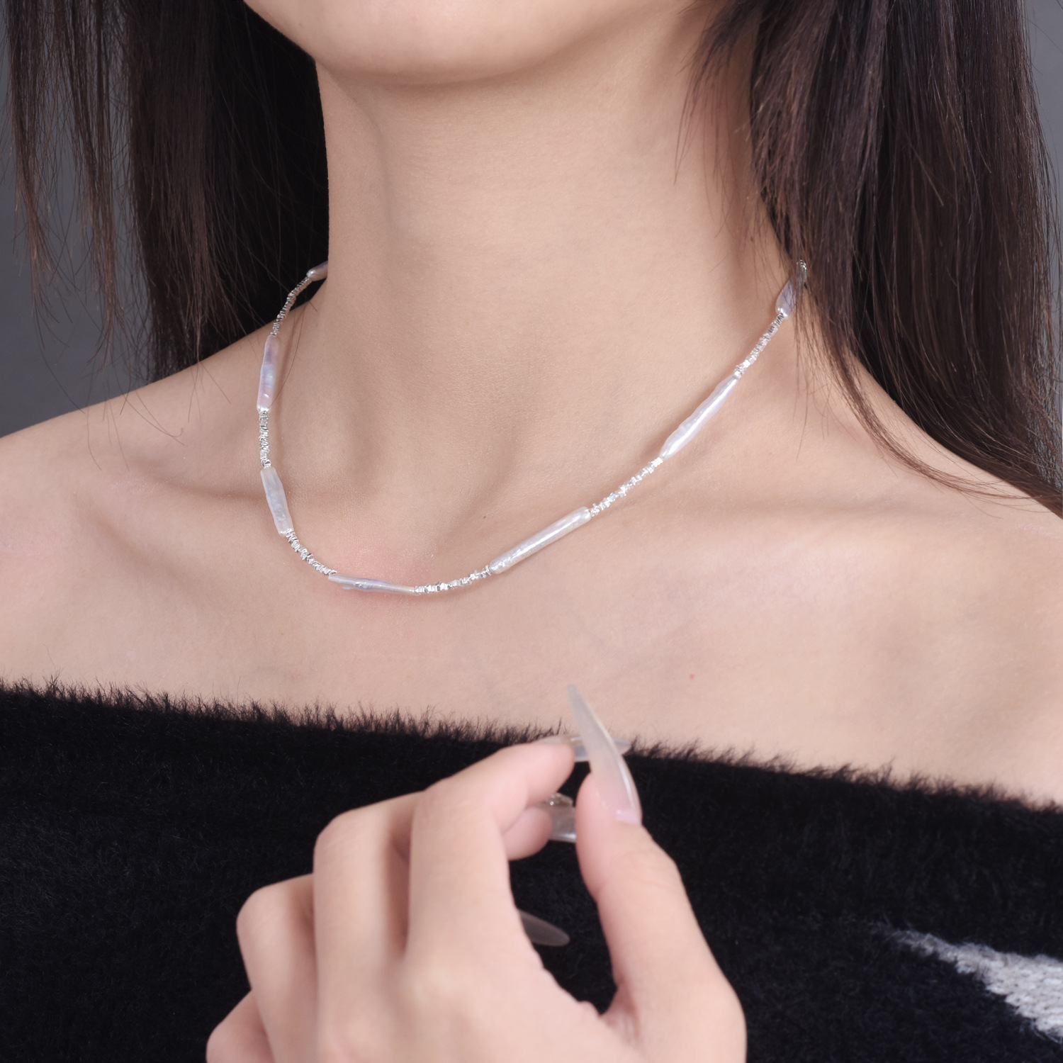 s925纯银珍珠碎银项链日韩风小众设计清冷感可叠戴锁骨套链饰品